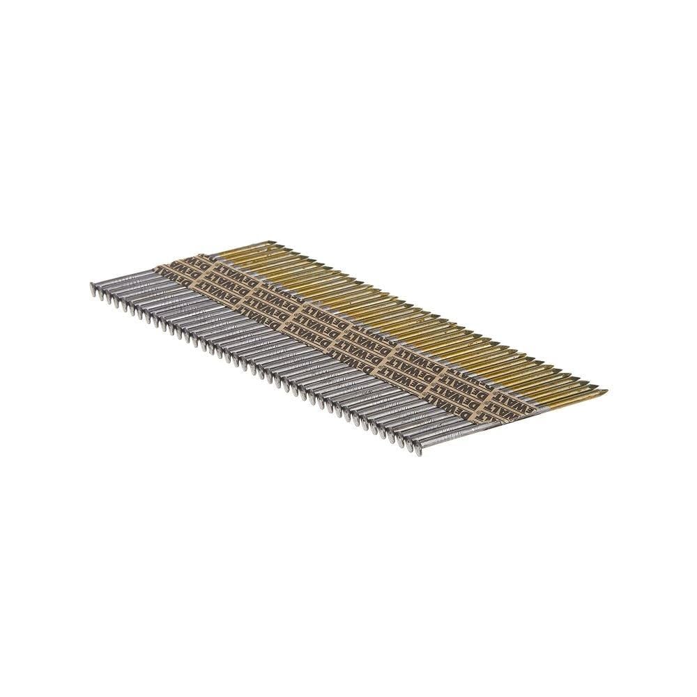 Details: DEWALT DPT-10D120FH 3-inch x .120-inch Paper Tape 30 degree Smooth Bright Off-Set Round Head features an off-set round head to satisfy building code in all regions (ICC-ES ESR-1539 Code Compliant). The nails have a smooth shank with a bright finish, and are designed with a 30 degree paper tape collation (2,500ct). Common applications include Framing, Sheating, and Decking.