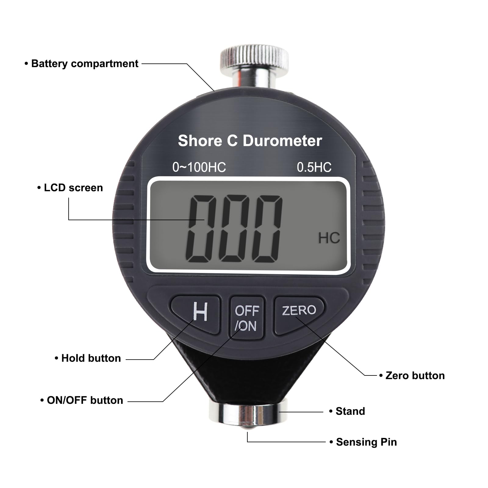 Digital Hardness Meter Durometer Hardness Tester - Portable and Versatile for Measuring 0-100HD Shore A/C/D Hardness of Rubber, Tires, Plastics, Thermal Plastics, Flooring, and Bowling Balls