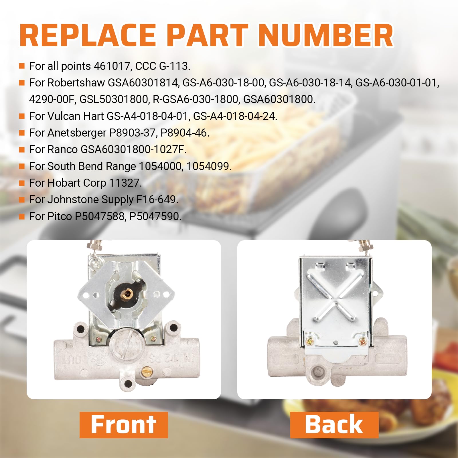 - 【Replace Part Number】For All points 461017,CCC G-113; South Bend Range 1054000,1054099; For Hobart 11327; For Pitco P5047588, P5047590, Gsa60301814; For Vulcan Hart Gs-A4-018-04-01, Gs-A4-018-04-24; For Anetsberger P8903-37, P8904-46; For Johnstone Supply F16-649.