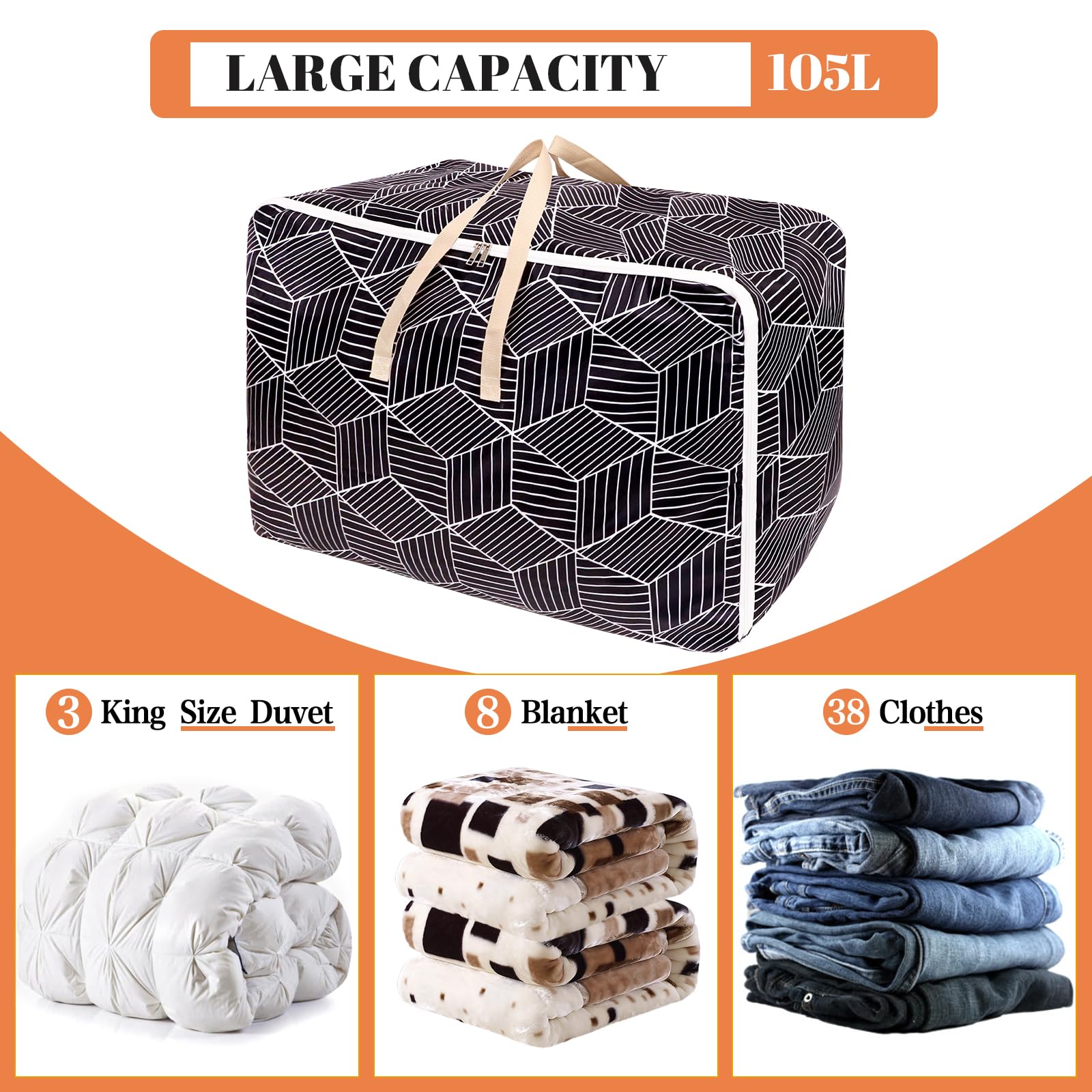- 【Large Capacity】This large clothes storage bag has a capacity of 105 liters, and each clothing storage bag measures 70 x 50 x 30 cm/27.6 x 19.7 x 11.8 inches, which can store king-size sheets, down jackets, blankets, pillows, etc. , which are dustproof while also protecting them from damage when moved.