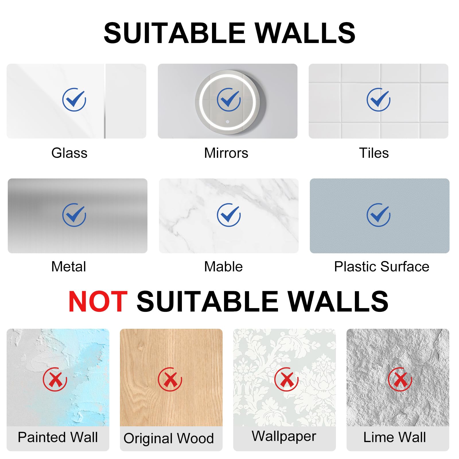 - 【Widely Used】The vacuum suction cup hook can be firmly adsorbed on smooth and non-porous surfaces such as shower glass doors, mirrors, glossy tiles, smooth plastic surfaces, windows, stainless steel, quartz, laminate, etc. Suitable for bathrooms, kitchens, living rooms, bedrooms, offices, etc. Note: Not suitable for dusty and uneven surfaces such as lime walls, painted walls, wallpaper, logs, etc.