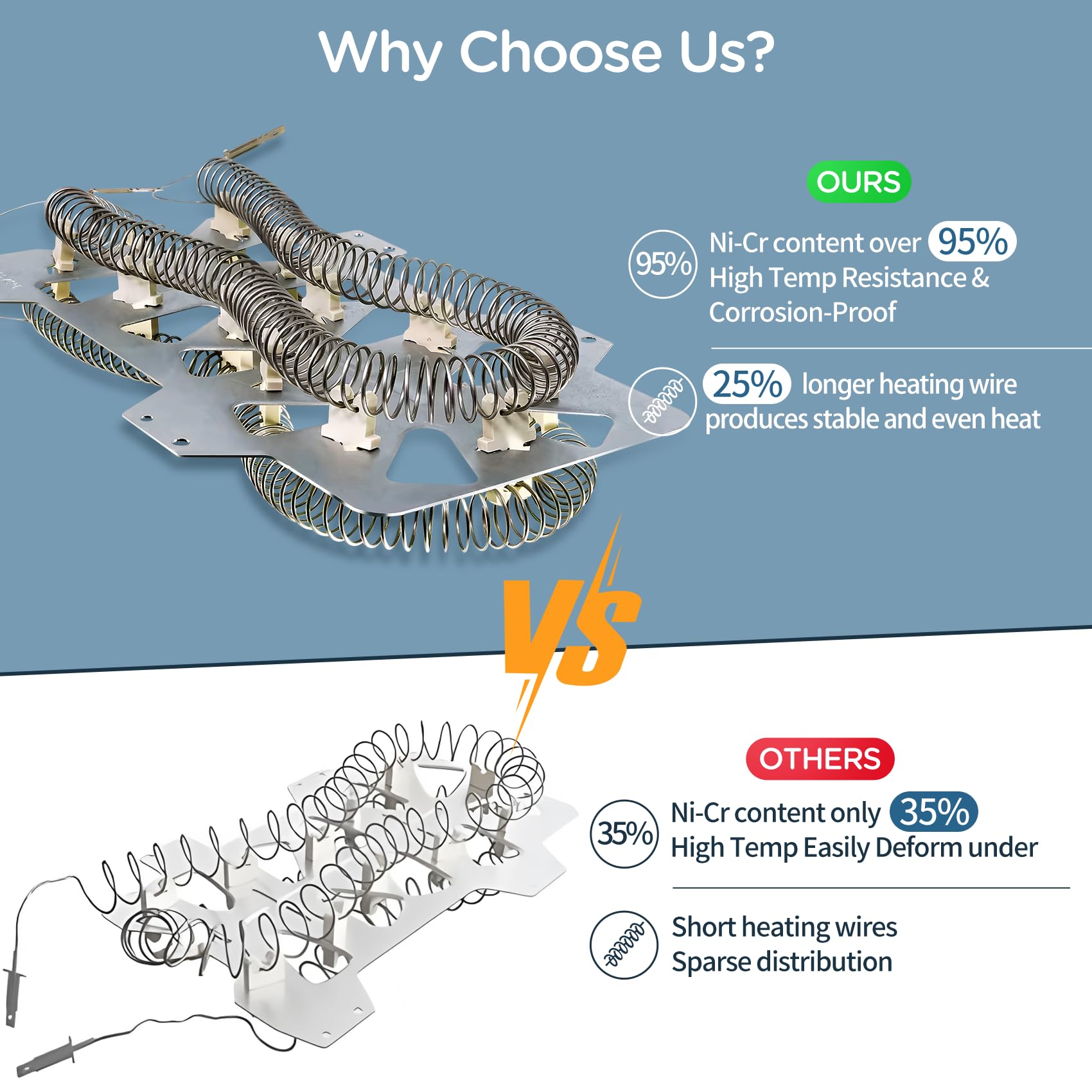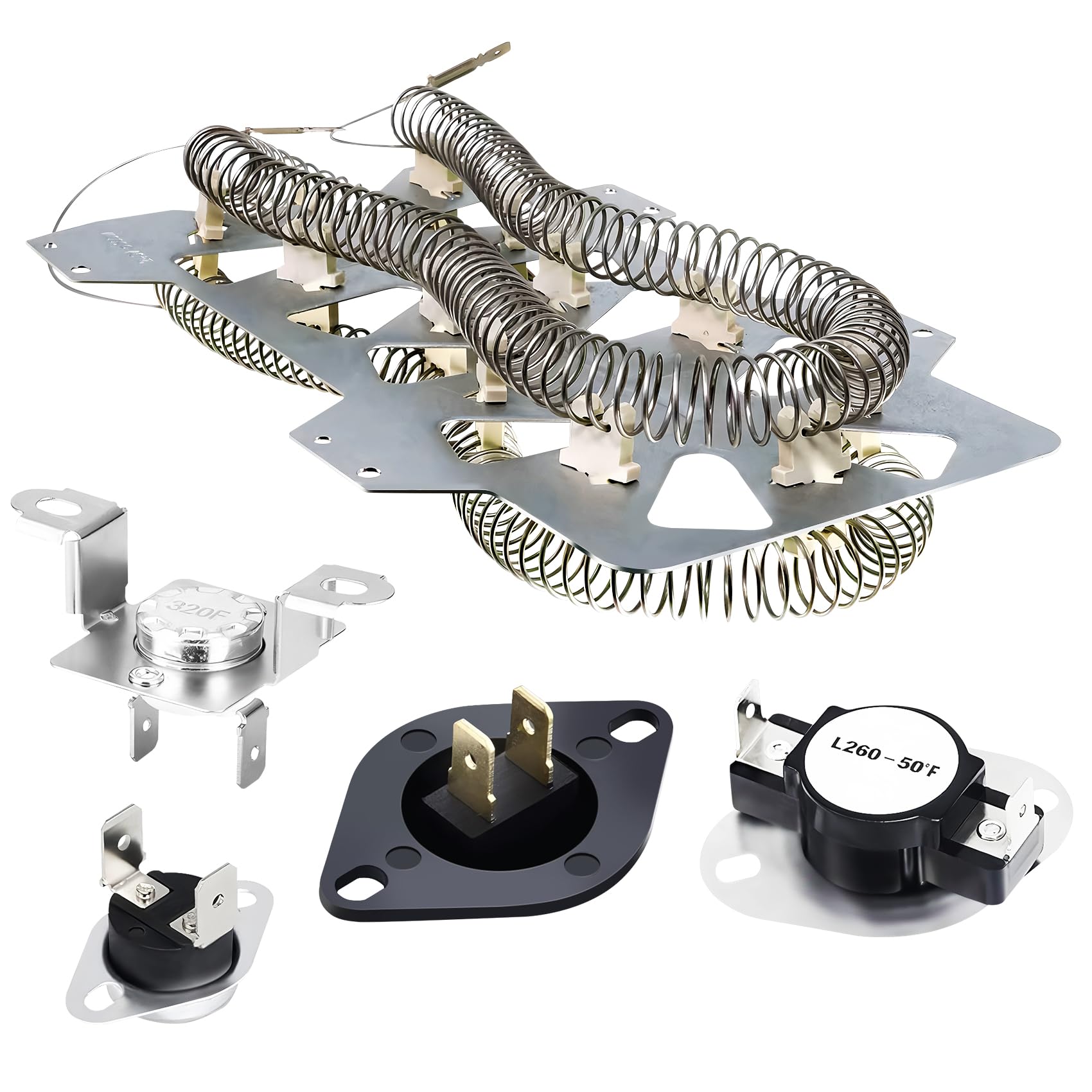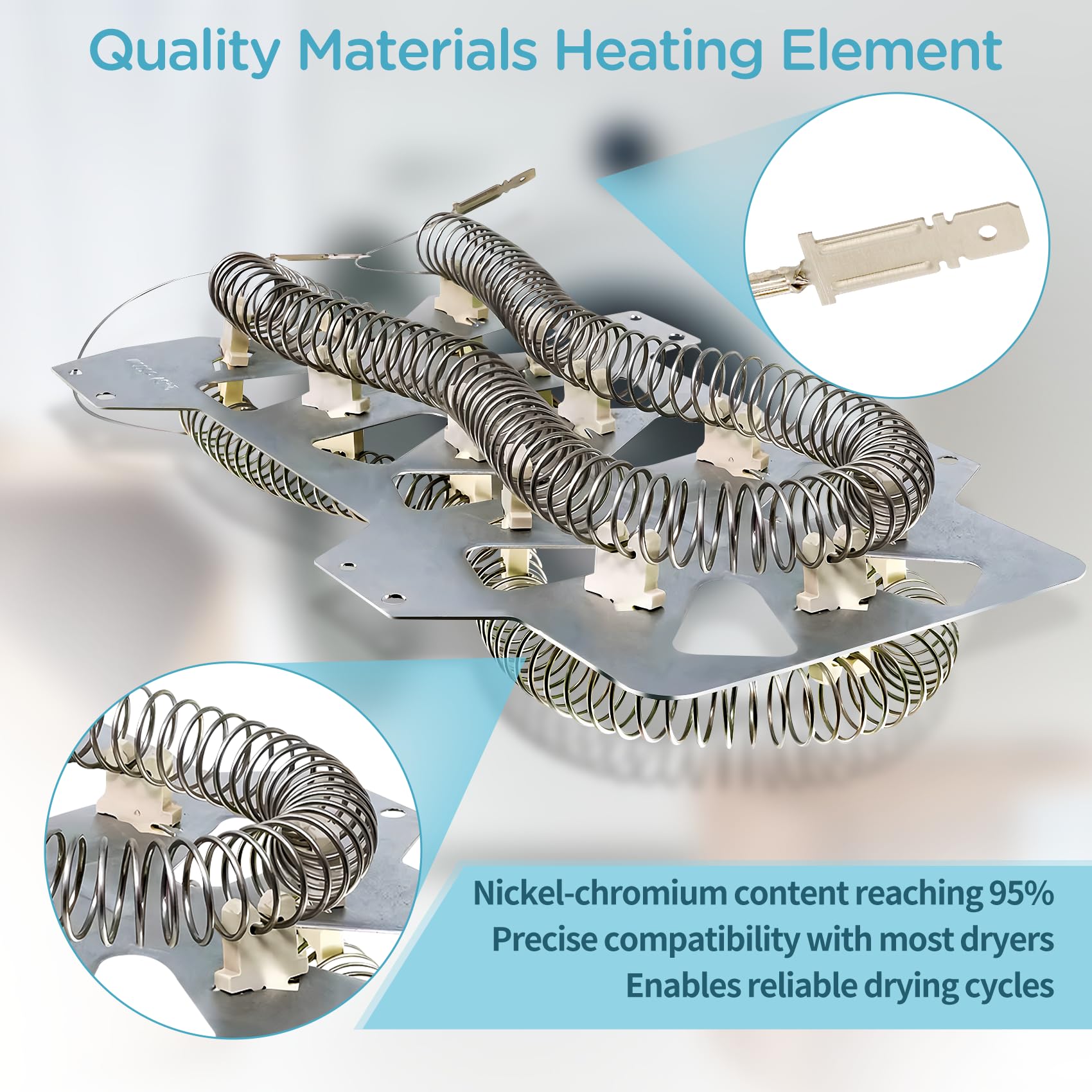 - 【Fixes Problems】 Using our dryer heating element kit can help solve common problems such as insufficient dryer heat, long drying times, abnormal noise, etc. Our heating elements are made of high quality materials for durability and precise compatibility with most dryers, with over 95% nickel-chrome content and 25% longer heating wire lengths to provide consistent heat output for a reliable drying cycle. The heating element have one year warranty, if you encounter any problems during use, you can contact us, we will reply and solve your problem within 24 hours.