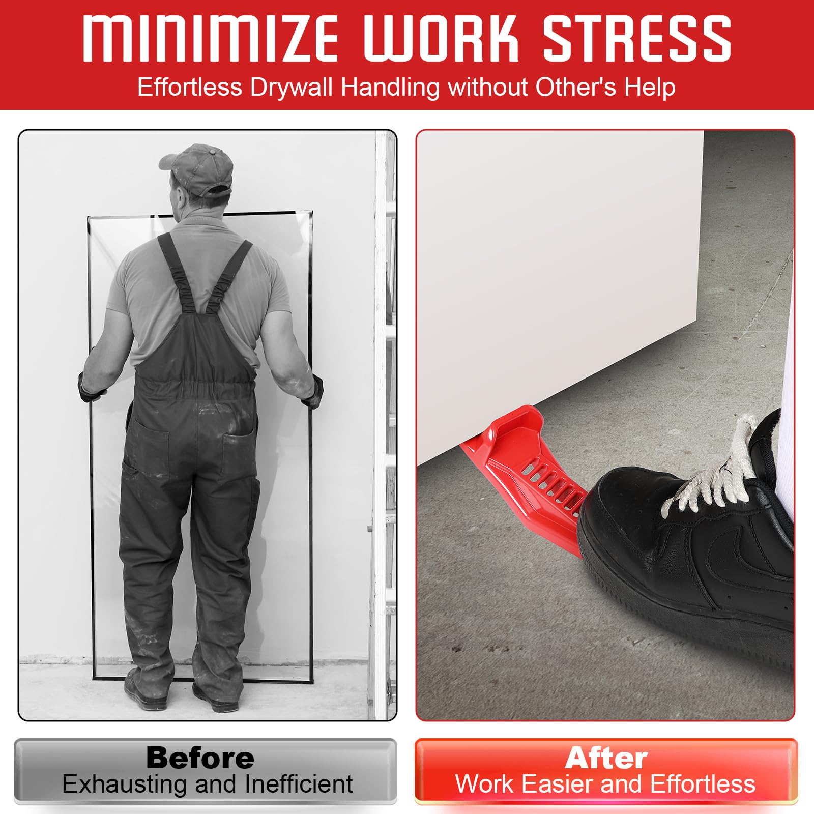 - Easy to Use & Time Saving: Our sheetrock tool features a taller and wider toe insert, smoothly hoisting panels with ease. The diamond patterned heel ensures exceptional grip on every drywall sheet. Simply slides this drywall foot lift under the panel for easy foot control to lift and pivot, keeping both hands free to align hinges and secure screws