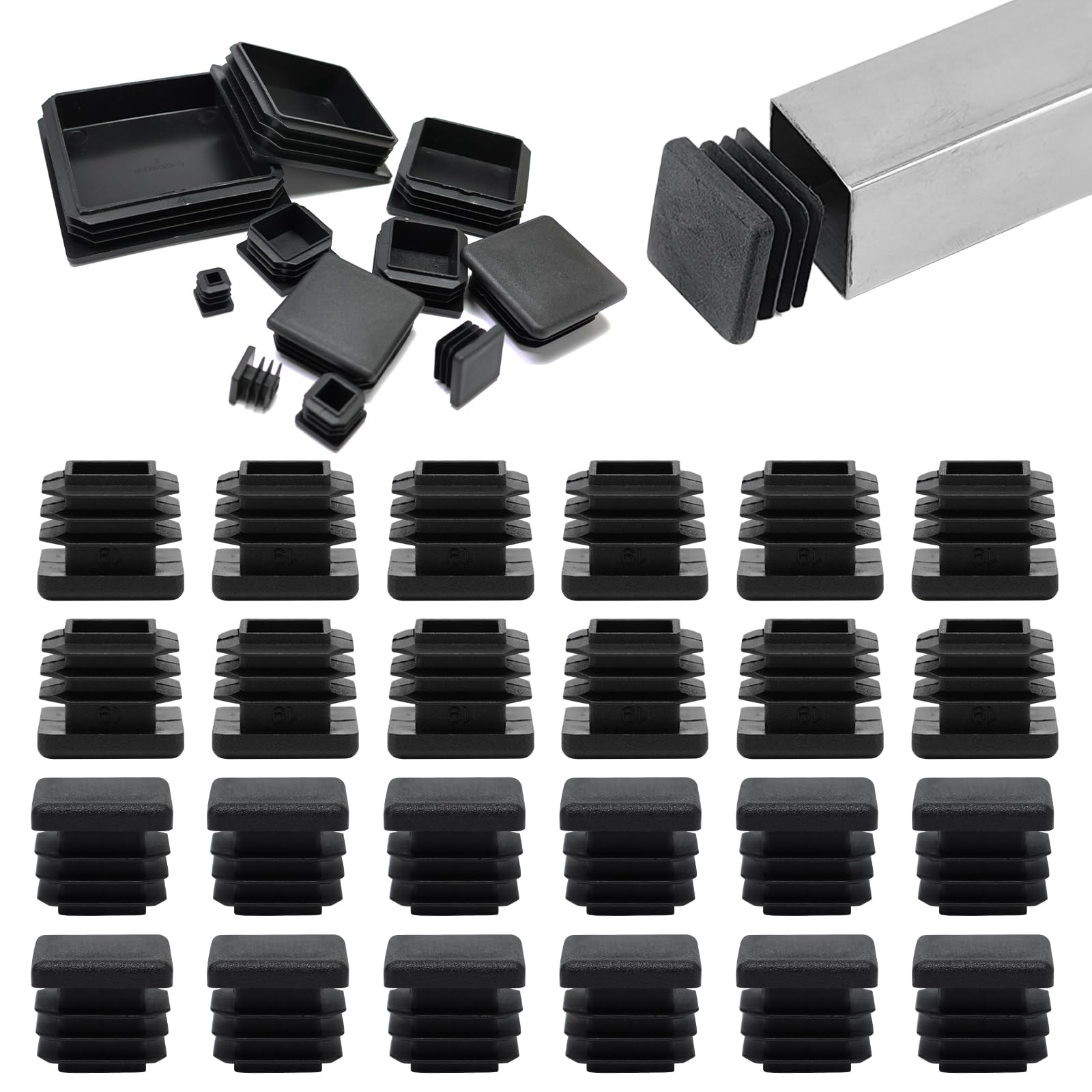 EASYEAH 3/4" (19mm) Plastic Hole Plugs Black -Square Chair Leg Caps & Pipe Plugs, Tubing End Caps for Metal and Wood Legs Tube, Outdoor Furniture Feet Table Patio Glide Floor Plastic Plugs, 24 PCS