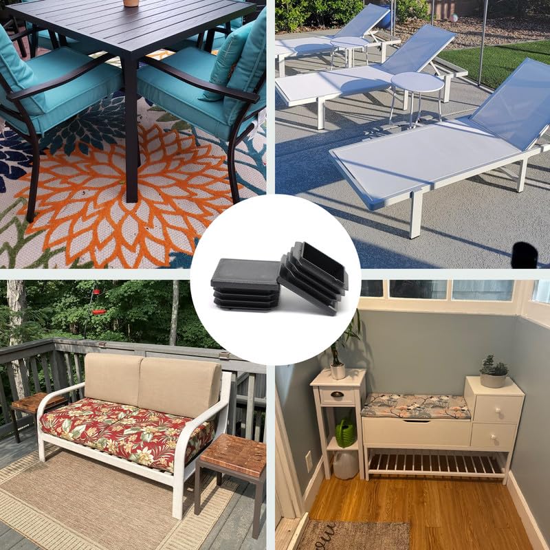 - Multiple Function: The plastic caps and plugs make furniture move more smoothly, preventing scratches and reducing movement noise, protects your patio chair feet and table legs from damage. Also can dress up the end of the square tube from hurting and prevent rust out from the rain