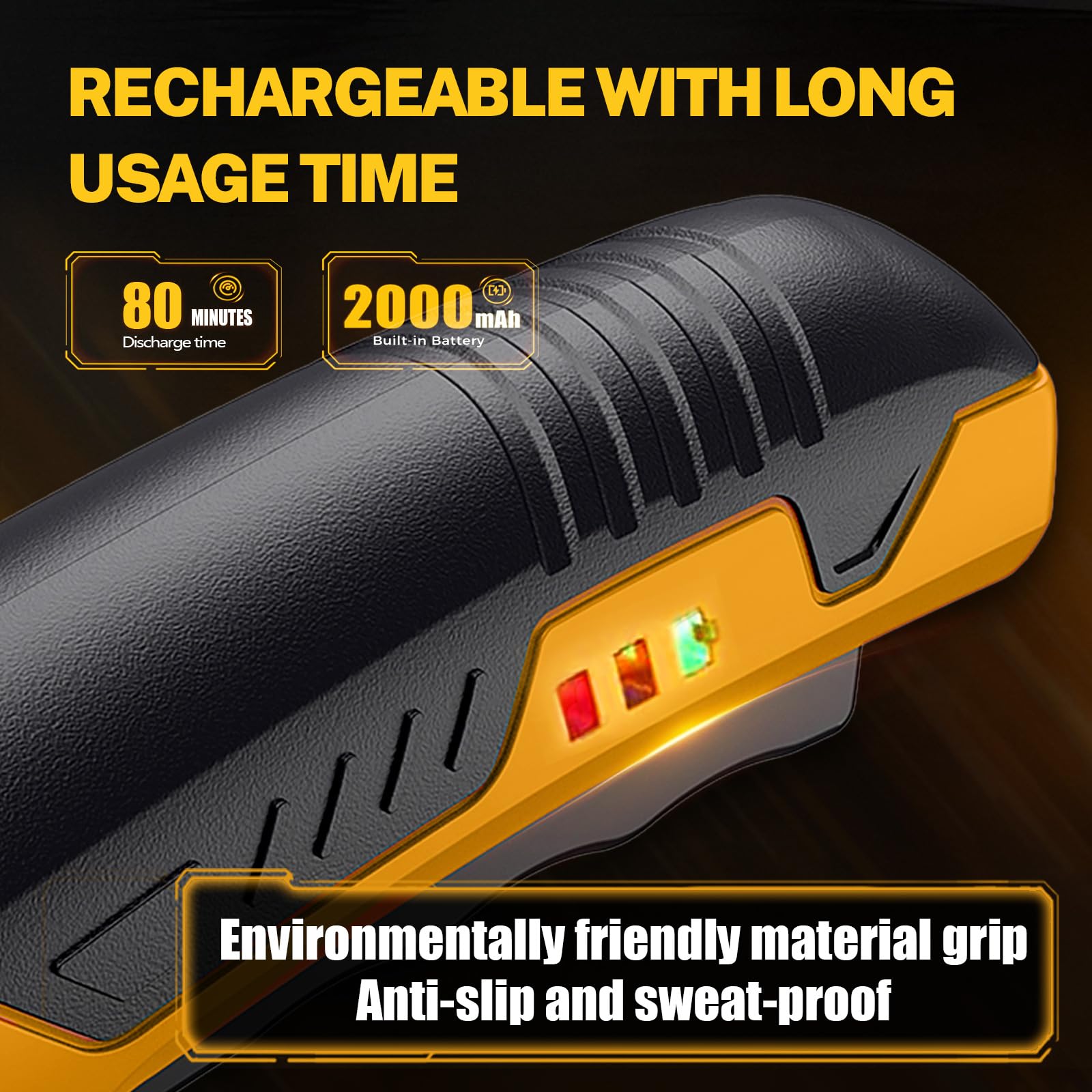 Built to last, our cutting device features a ten-edge blade design that offers durability and extended use, while the high-performance copper core motor guarantees reliable power. The upgraded lithium battery comes with built-in overcharge and current protection features, allowing for safe long-term usage. The ergonomic button design ensures comfort during extended cutting sessions, making it lightweight and user-friendly.