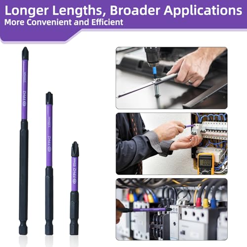 - Impact Screwdriver Bit Set For Electricians: SJAJNO screwdriver set includes six electrician impact screwdriver in three sizes: FPH1 and FPH2 type head models in 2.56-inch, 4.33-inch, and 6-inch lengths. Designed for professional and DIY electrical work, they are ideal for working on circuit breakers, switch panels, outlet covers, electrical boxes, and other common electrical applications