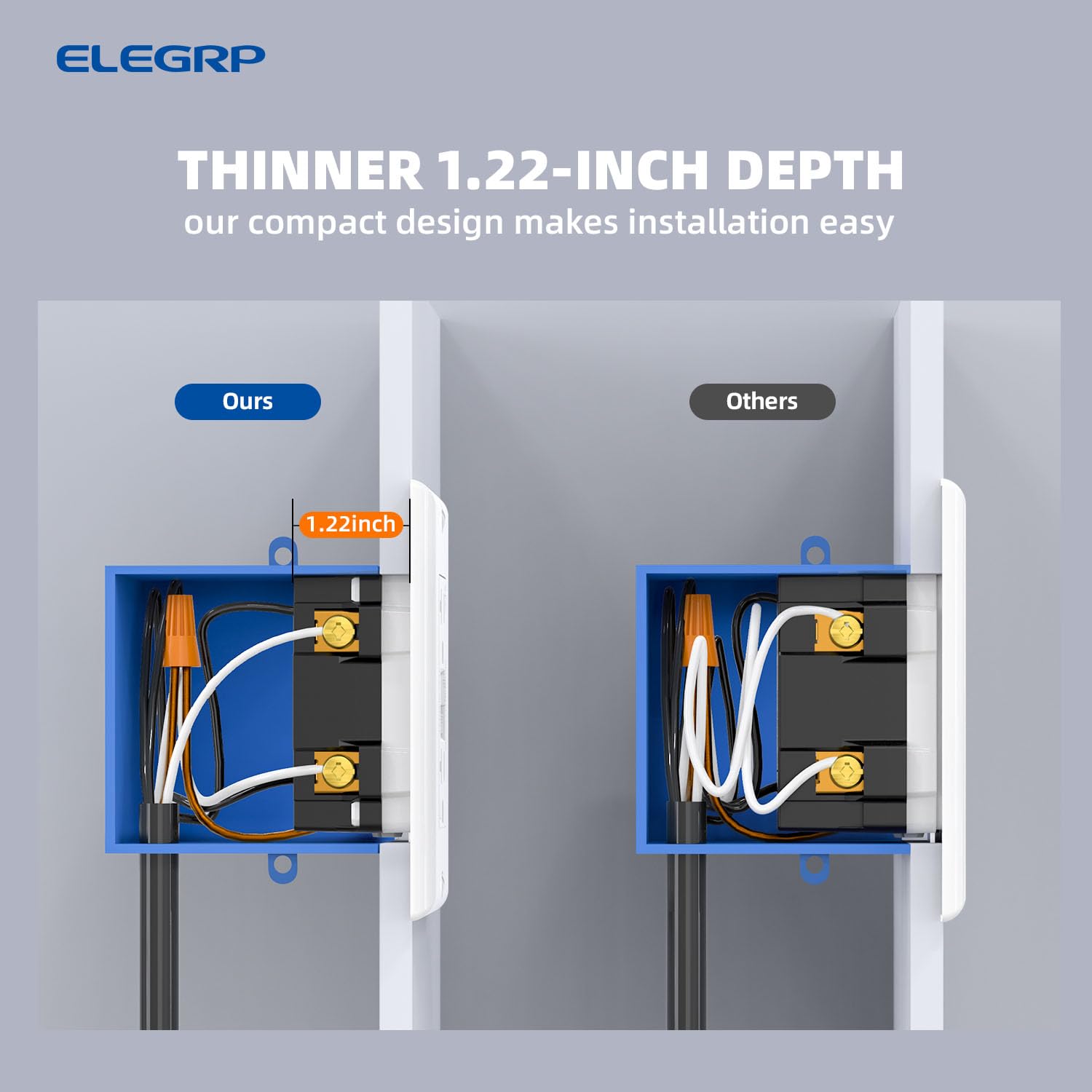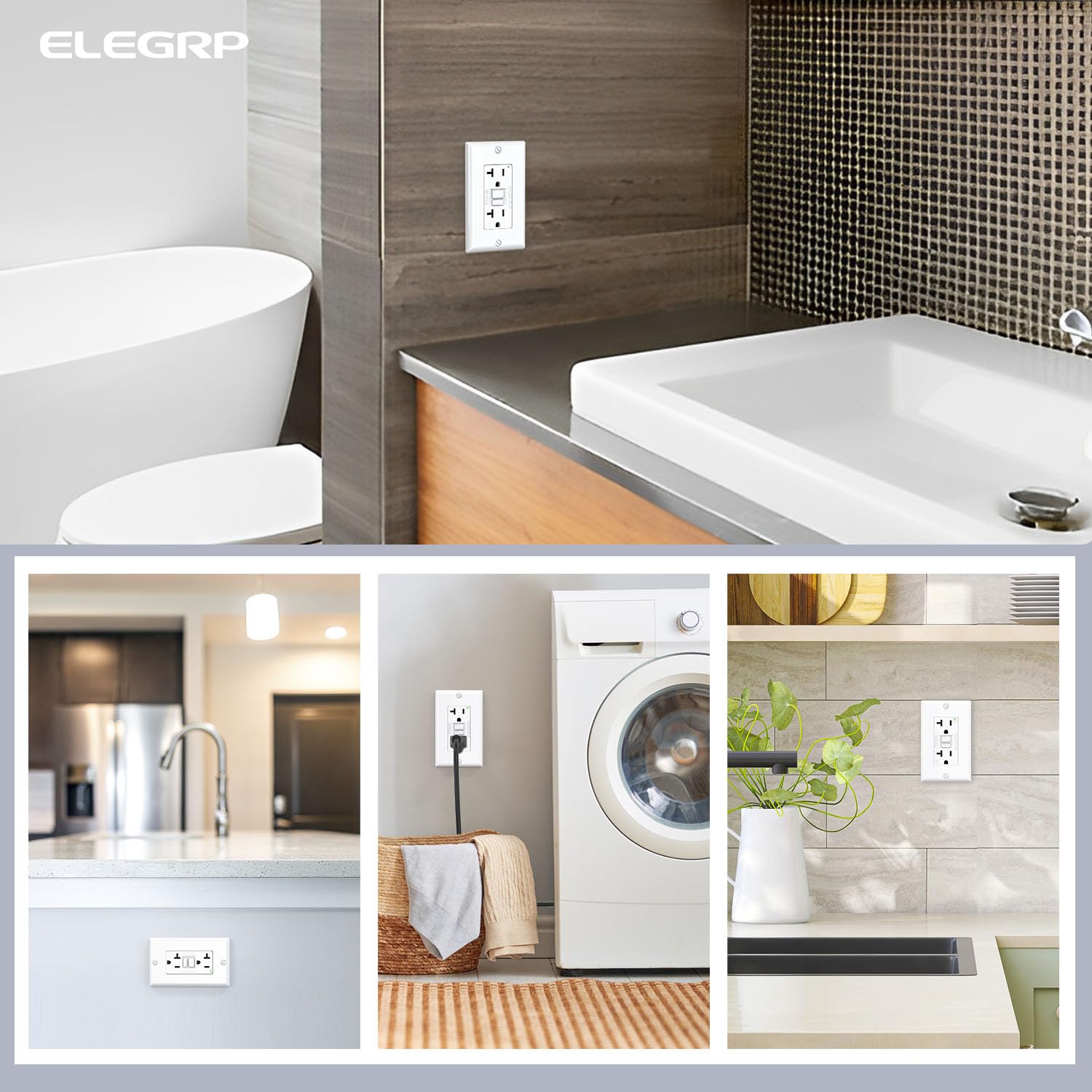 - ✅【Easier to Install】 ELEGRP GFCI outlet is designed with a thinner profile to make more room for wires in the wall box. Works with 12 or 14 AWG for side wire and back wire.