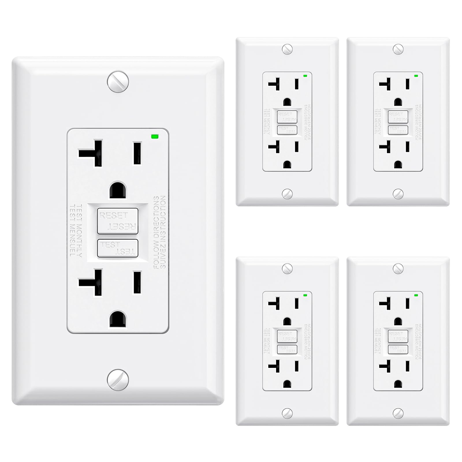 - ✅【Durable and Ultra-Safe Design】Built with premium high-impact resistant thermoplastic materials. Endurance-tested over 6,000 times—twice the UL requirement. Features advanced safety features like 6kV surge protection, Reset-Disable, and Reversed Wiring Prevention to ensure long-lasting performance and maximum protection.