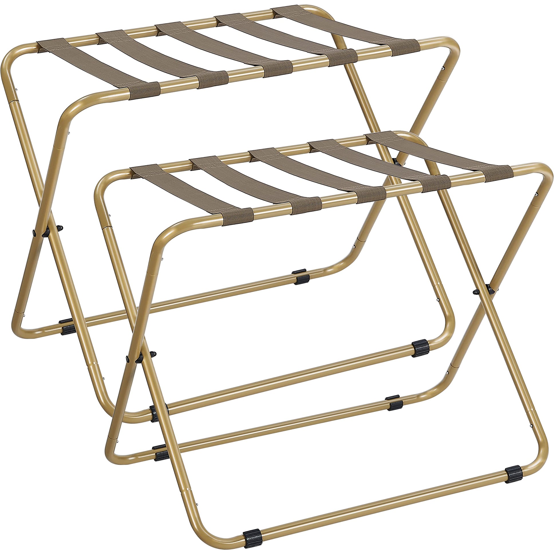 ELYKEN Luggage Rack for Guest Room 2 Pack, Folding Suitcase Stand, Heavy Duty 110LBS Load Bearing Easily Assemble Luggage Holder, Gold