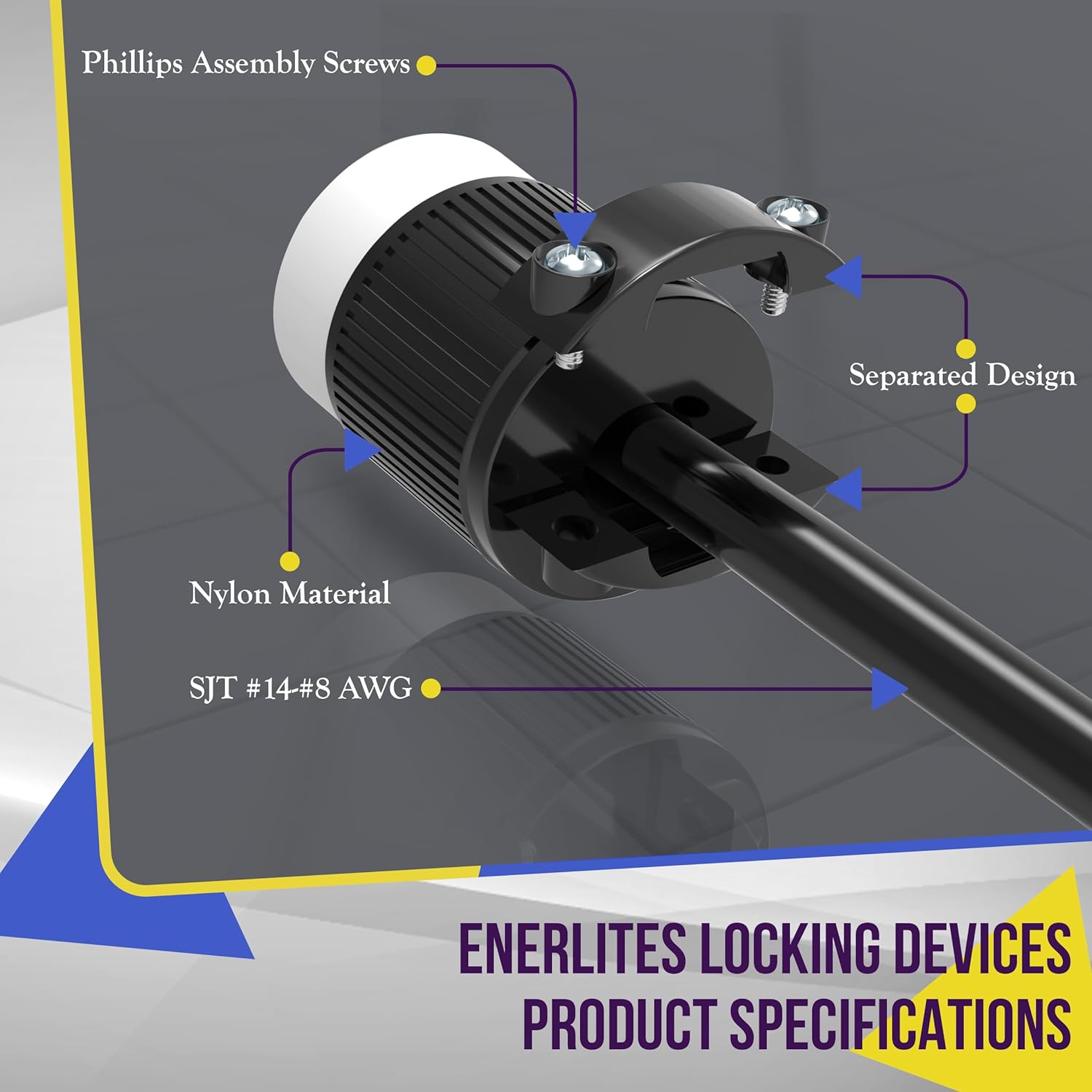 The ENERLITES 66470-BK is a NEMA L14-30P locking plug specifically designed to ensure a secure and reliable connection for industrial applications. It is user-friendly and ideal for enhancing safety in industrial environments where non-locking plugs may be susceptible to damage from heavy usage. When used in conjunction with the locking connector 66492-BK, NEMA L14-30C, it provides correct and efficient wiring with terminals featuring clear ID markings. This product is UL-listed.
