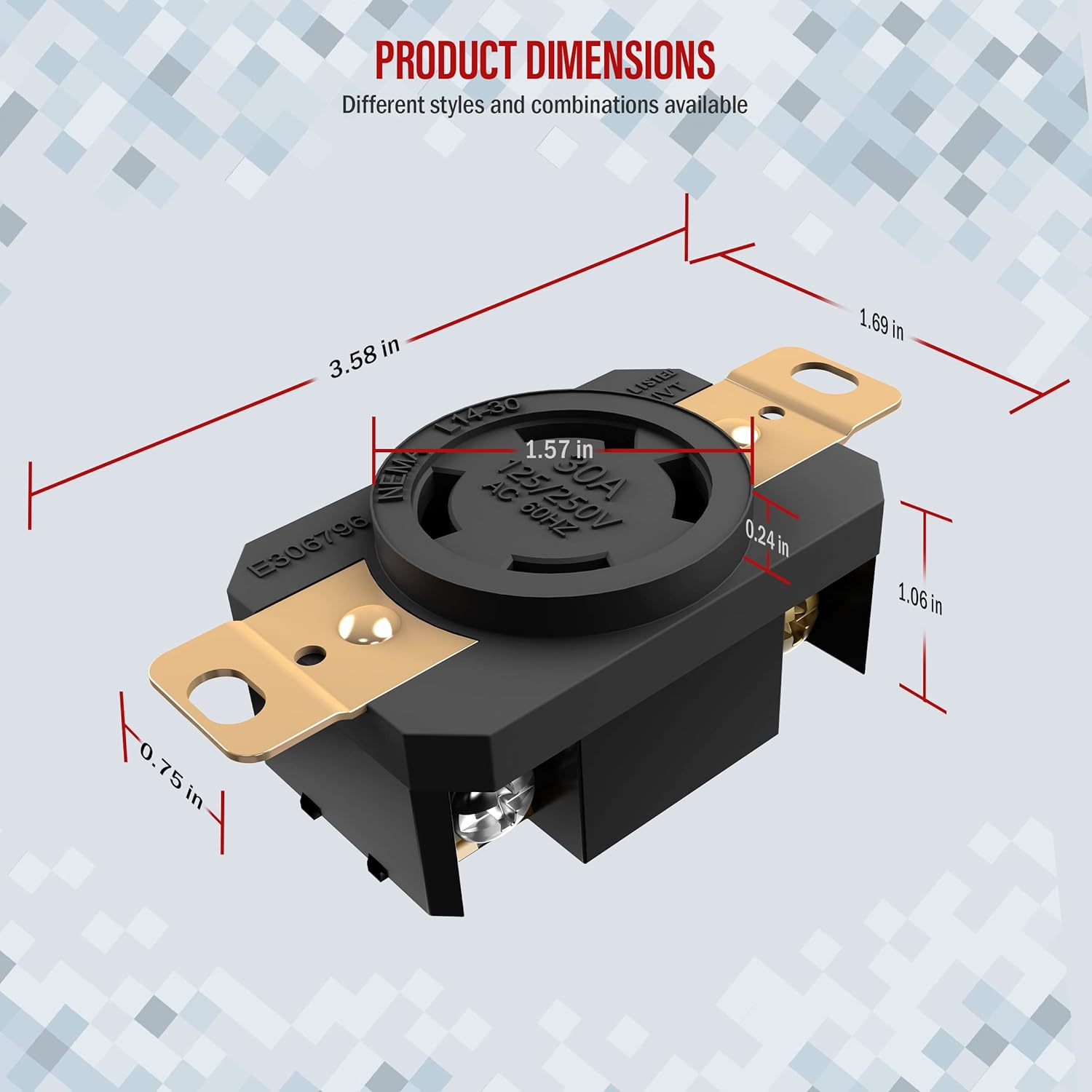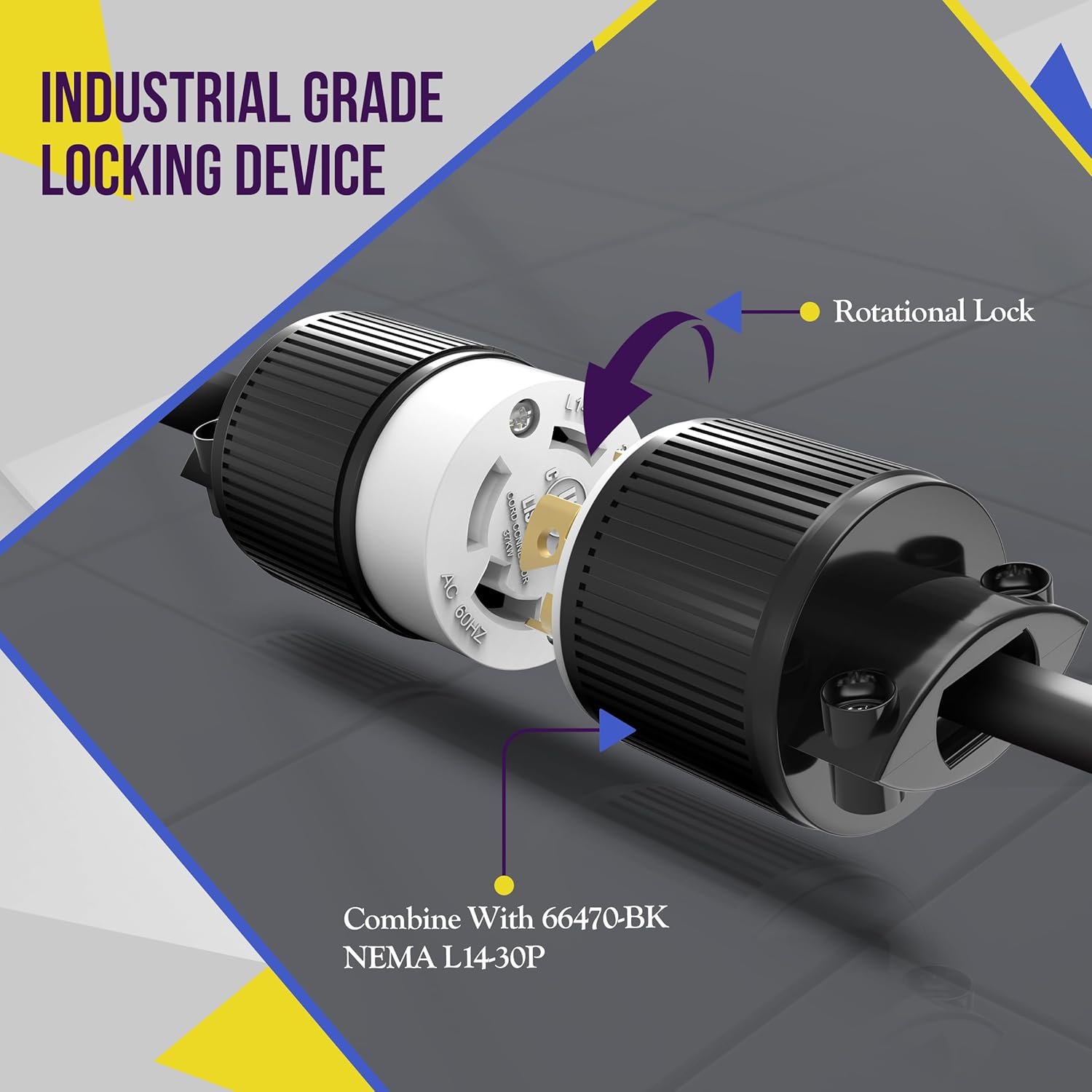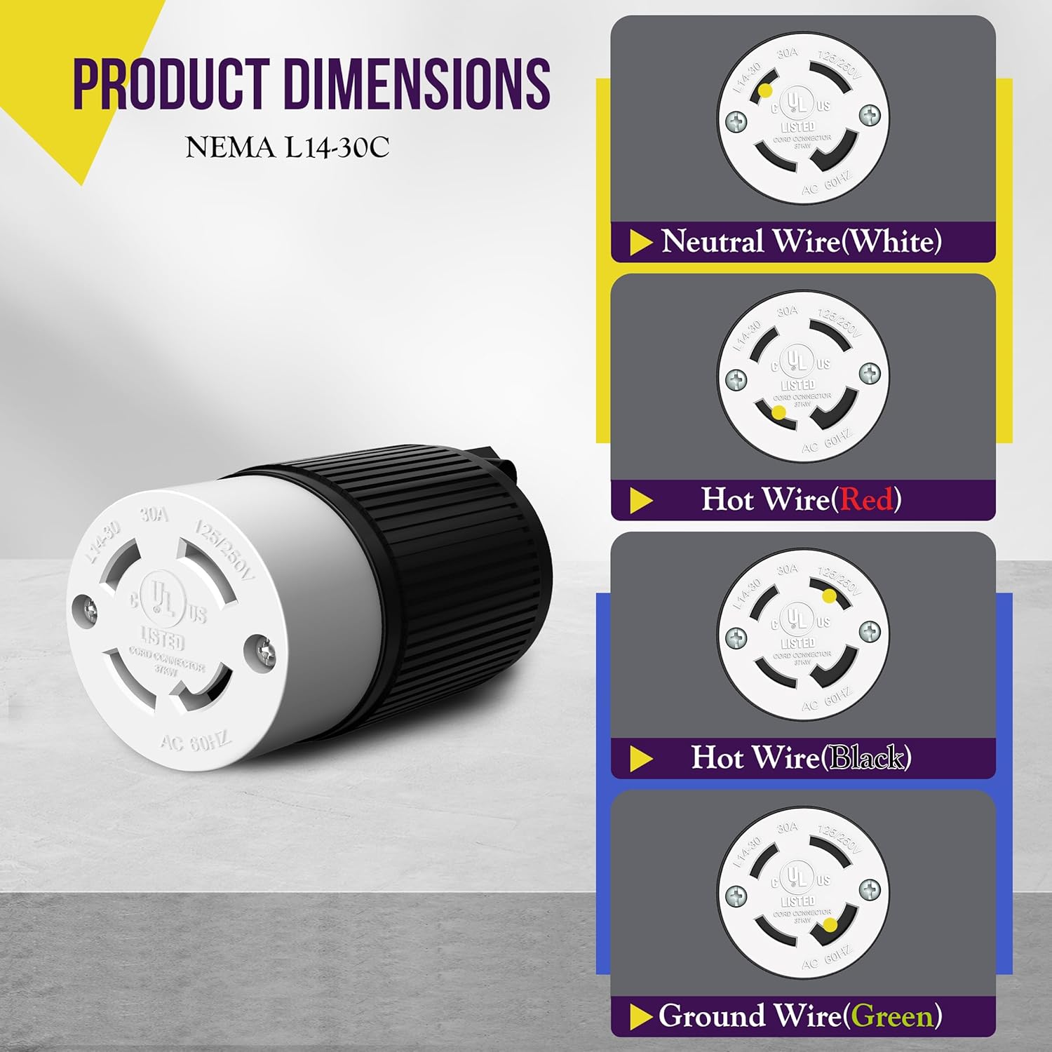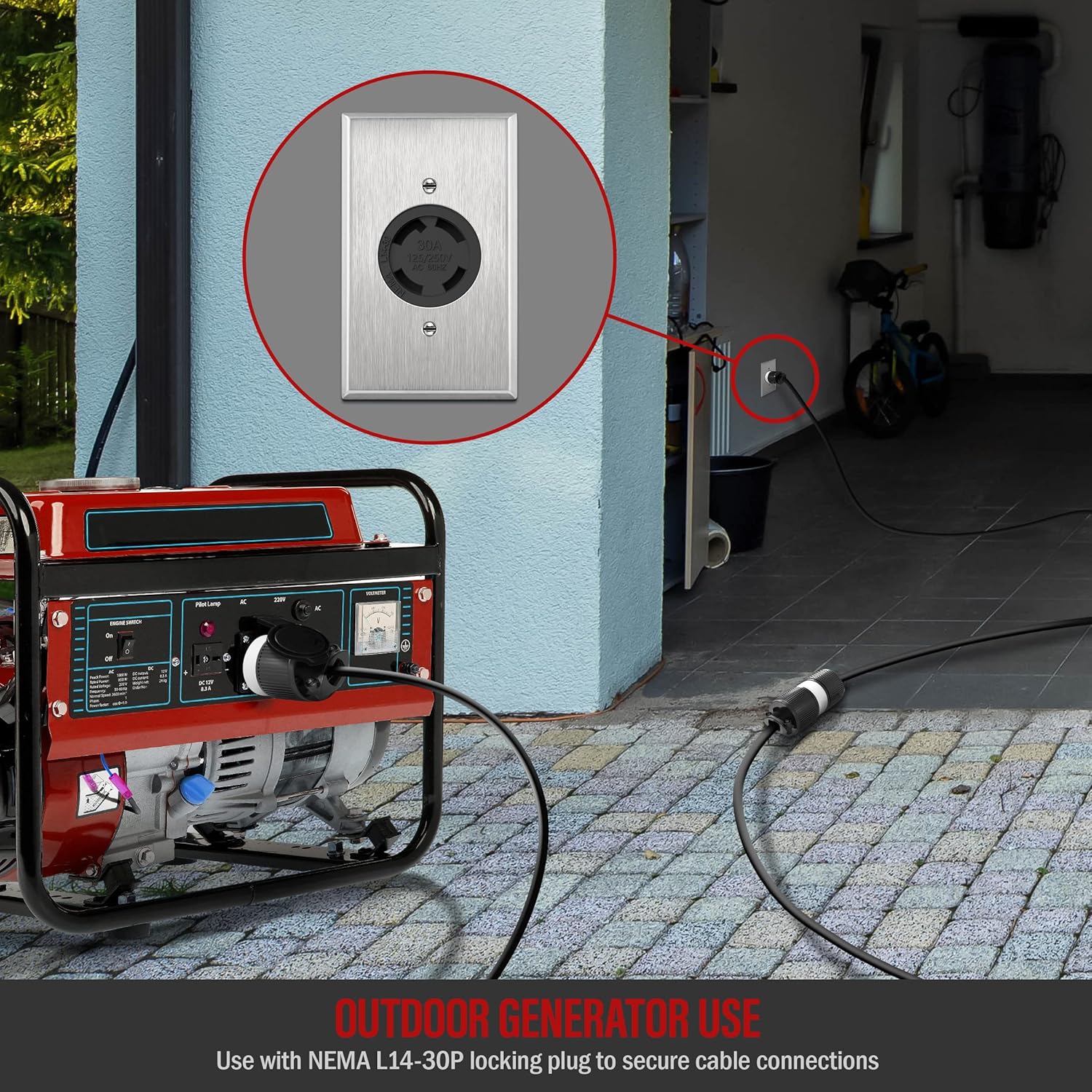 - 【Safe & Reliable】3-pole, 4-wire grounding configuration meets NEMA L14-30P standards. Each wire is independently secured to prevent short circuits and loose strands. A flexible rubber dust seal protects the wiring chamber from moisture and contaminants.