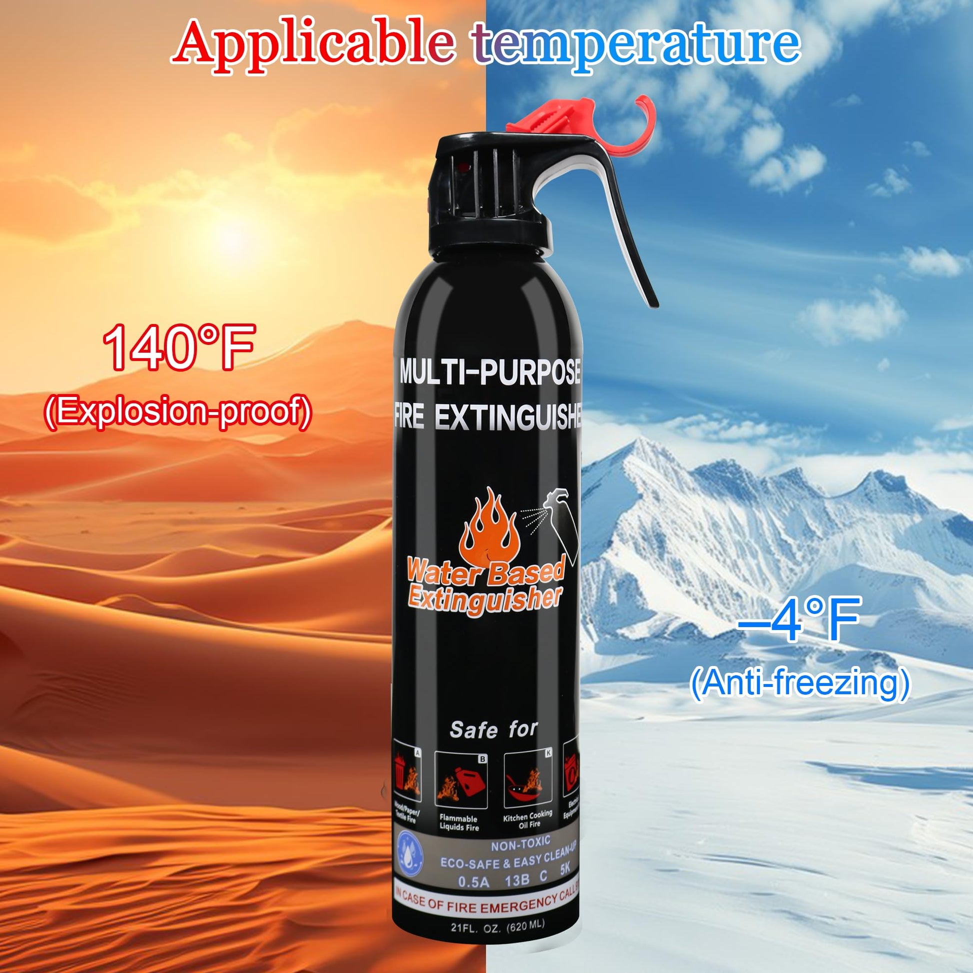 - Durable Fire Extinguisher: Our home fire extinguishers are durable and reliable. Suitable for both low and high temperatures (-4°F to 140°F), they ensure that they won't malfunction when used in cold weather, making them a must-have for home safety