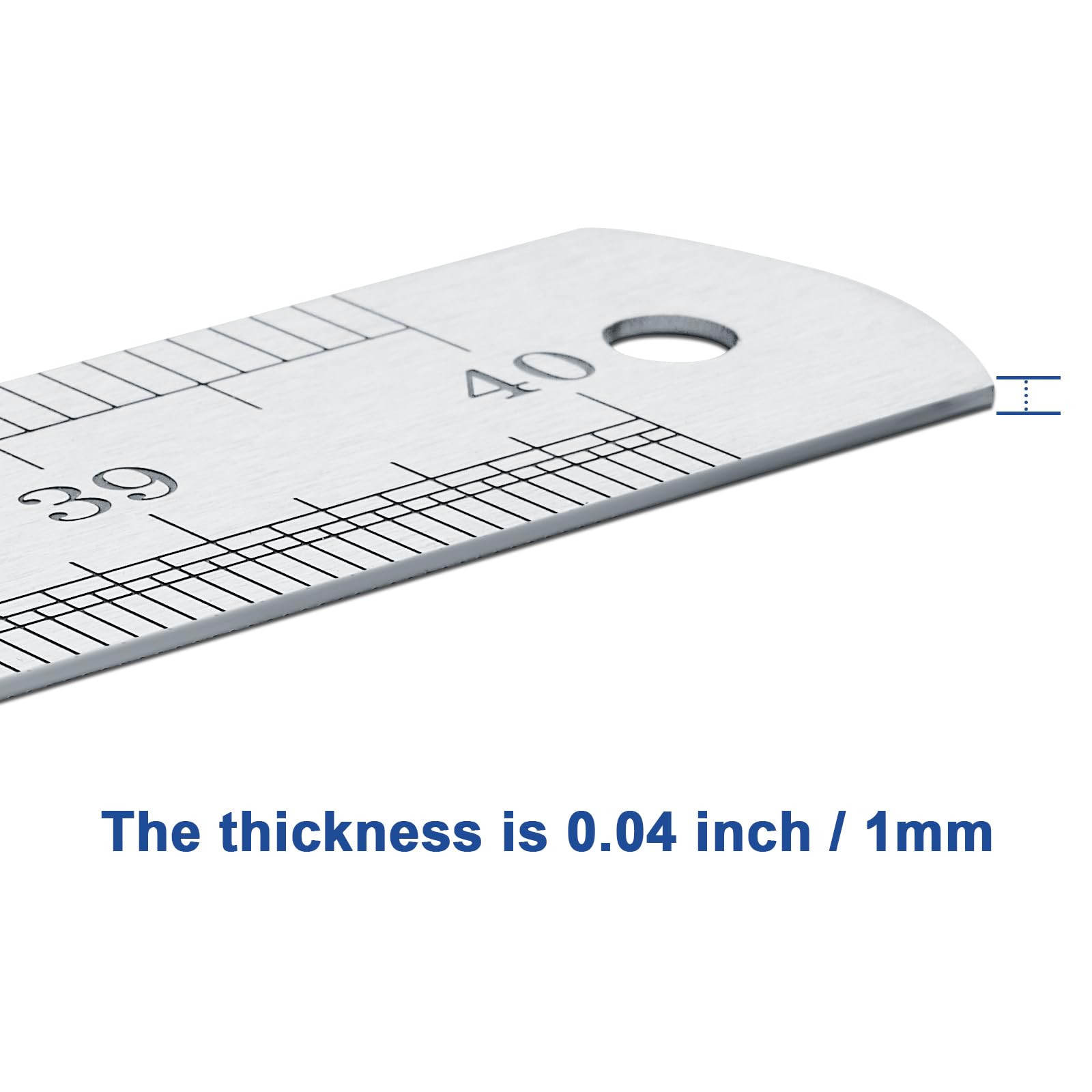 Details: 1 X One Meter (100cm) Stainless Steel Ruler. Ruler contains a hole on one end so that it can be easily stored on a hook when not in use.