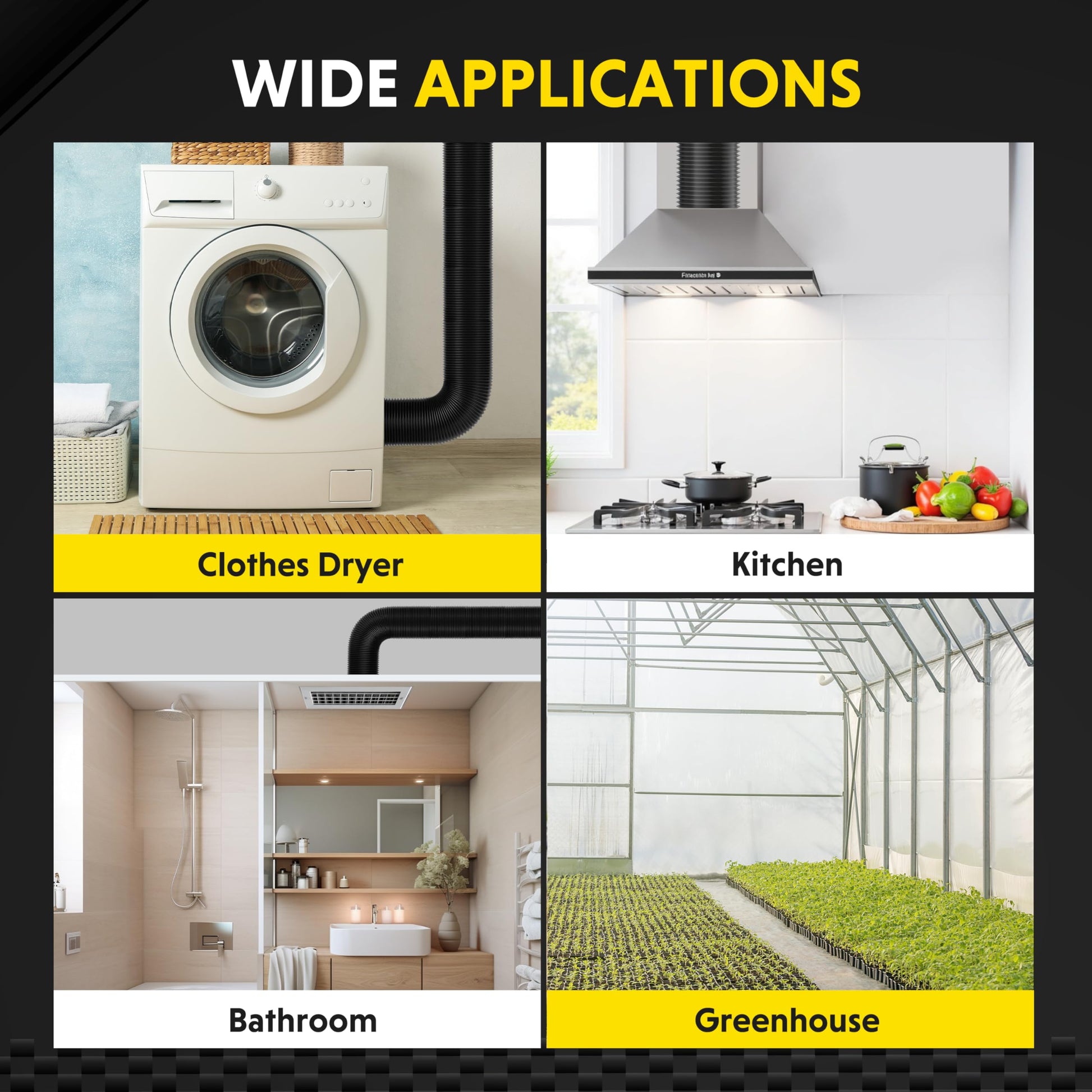 - Wide Applications: Aluminum ducting is suitable for HVAC system, it will move and deliver air in kitchens(cooking exhaust), greenhouses and growrooms(air circulation, intake, exhaust), bathrooms, dryer rooms, grow tents and other applications etc.