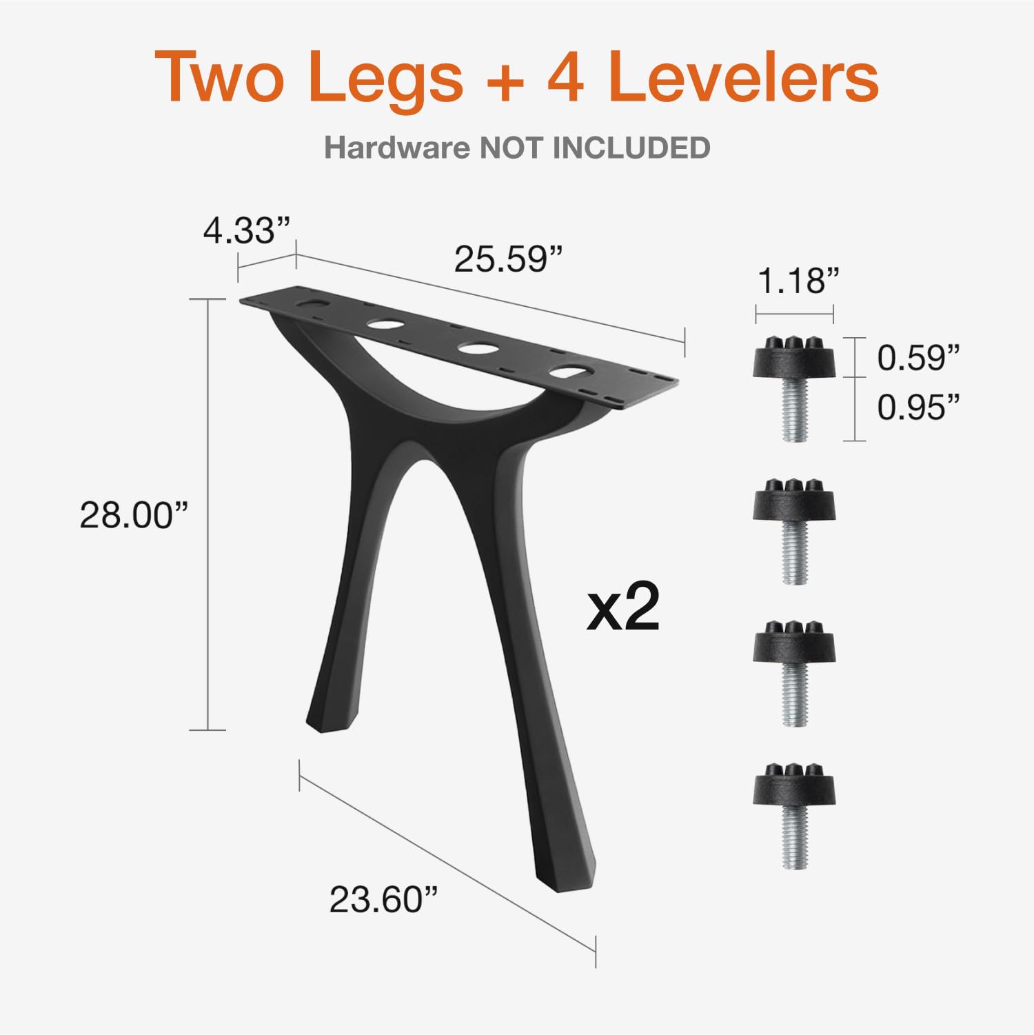 - [Built to Last with Durable Powder-Coated Steel] Dimensions 24"L x 5"W x 28"H, Hatty for metal Dining table legs are handcrafted from heavy-duty steel table legs and finished with a weather-resistant matte black powder coating. Built to support up to 500 lbs, table leg offers long-term stability for wood, epoxy, or marble tops—perfect metal legs for table indoor and outdoor table legs in DIY furniture legs projects.