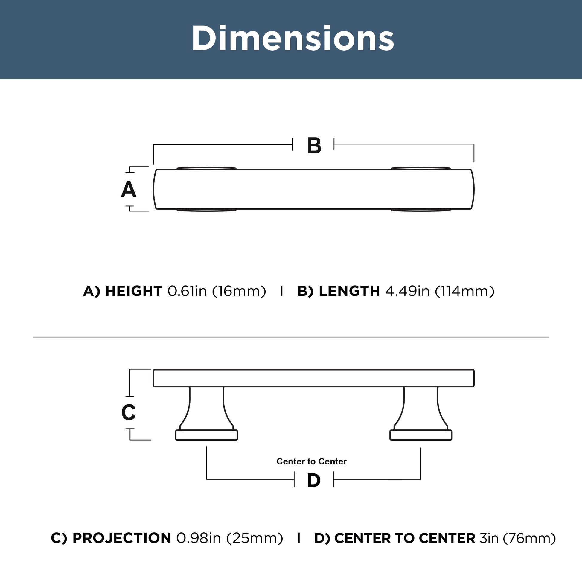 - MEASUREMENTS: 3 in. (76 mm) center to center screw mounting, rear-mount installation