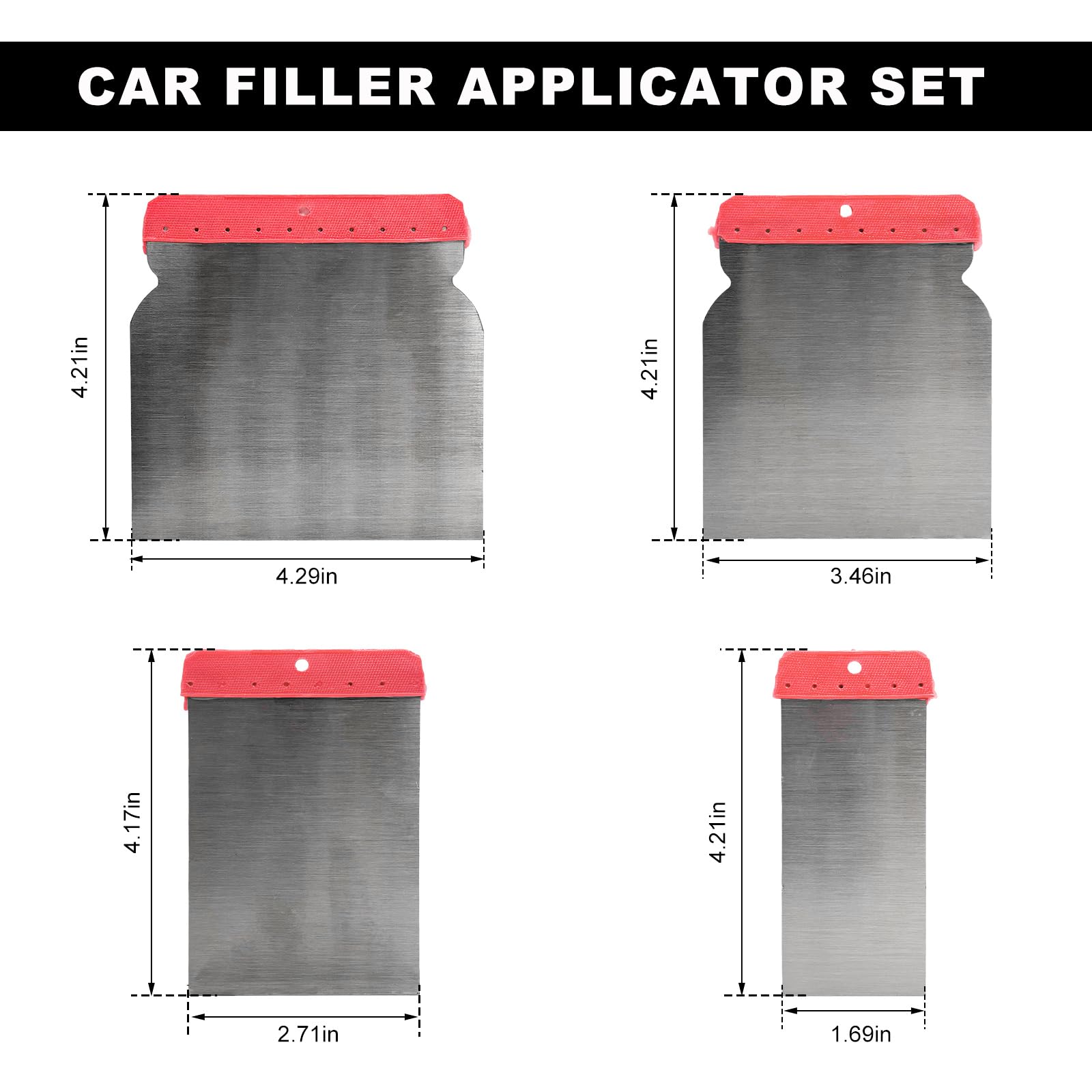 FSTURIOS 4PCS Body Filler Applicator Set, 4 Sizes Auto Paint Spreader Assortment with Metal Blade, Multipurpose Car Putty Knife Precision Hand Tool for Applying Body Filler Glaze