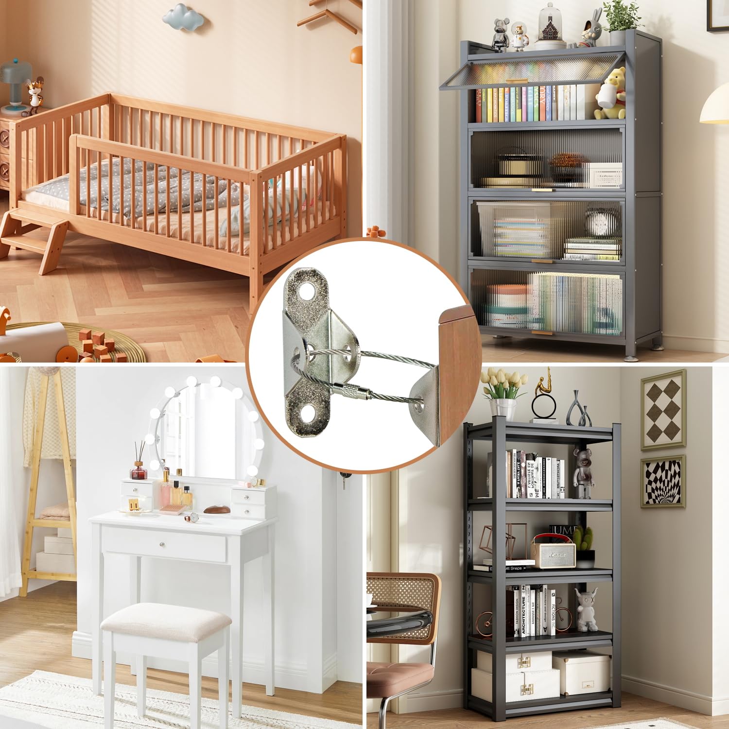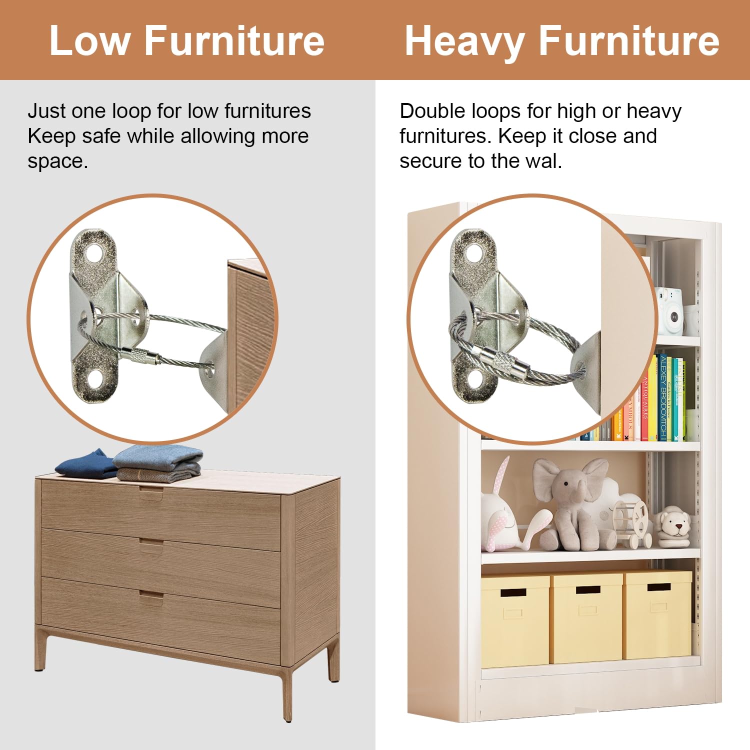 - Versatile Protection: These furniture anchors widely used to wall secure anchor for furniture, such as bookshelf, bookcase, cabinet, drawer, dresser, TV stand, armoires, wardrobes, and any baby furniture. It will help reducing incidents with curious toddlers