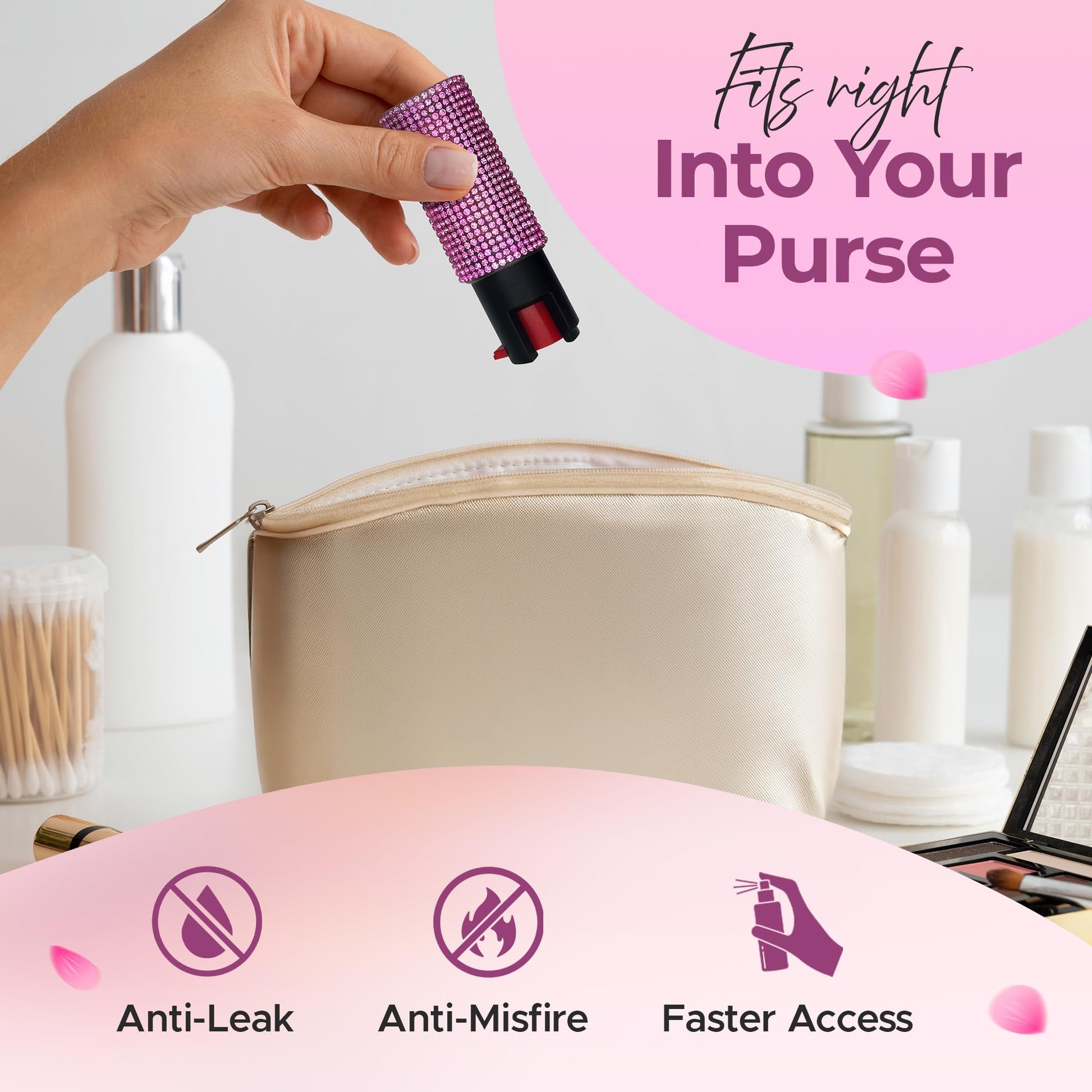 FURY Rhinestone Pepper Spray, 12ft Range, UV Dye Identifier, Police Strength, Made in USA, Stylish Multicolor, Self Defense, Everyday Safety, Slide Top (Pink)