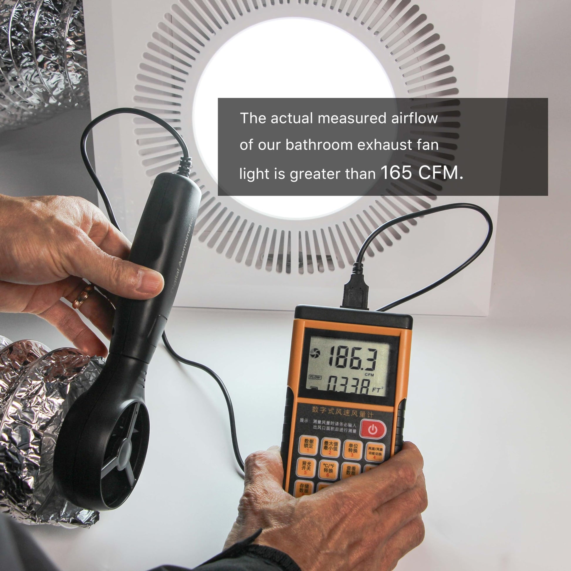 - Bathroom Fan with Light: Boasting a powerful, energy-efficient 10W pure copper motor and a 15W 3CCT LED light combo, this unit delivers 165 CFM of airflow while operating silently at just 1.2 Sones. ideal for spaces up to 100 sq.ft., it's perfect for bathrooms, kitchens, garages, bedrooms, offices, supermarkets, restaurants, hotels, movie theaters, hospitals, and other public areas. it keeps your space fresh and odor-free, effectively regulating indoor air quality.