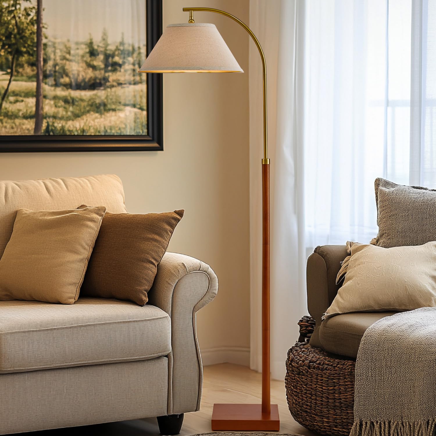 - Gold Floor Lamp: The G-SAFAVA perfect modern standing lamp is made of high-quality metal and has an elegant appearance. Linen shade create a soft light to illuminate your home life.The pole is straight and perfectly connected to the base without swinging.The base is Heavy enough, Safe for your baby and pets.The base to provide a good stability from falling that can make sure safety and stable even on the carpet
