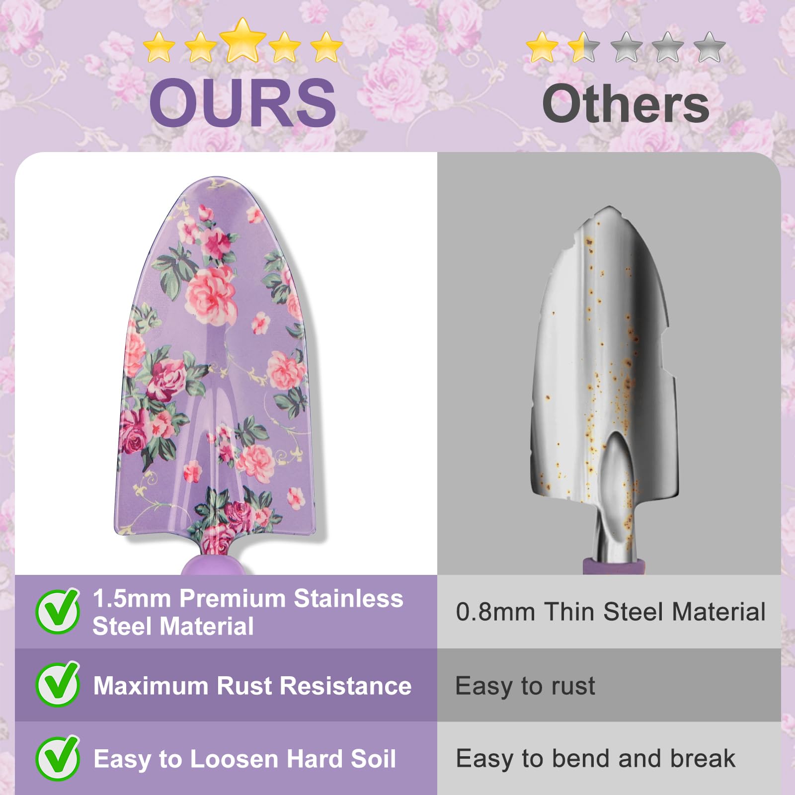 - Durable & Rust-Proof Tools: Crafted with high-hardness stainless steel, each tool is built to withstand tough gardening tasks without bending or breaking. Tools are rust-resistant, sharp, and tough, ensuring they last through many seasons of gardening.