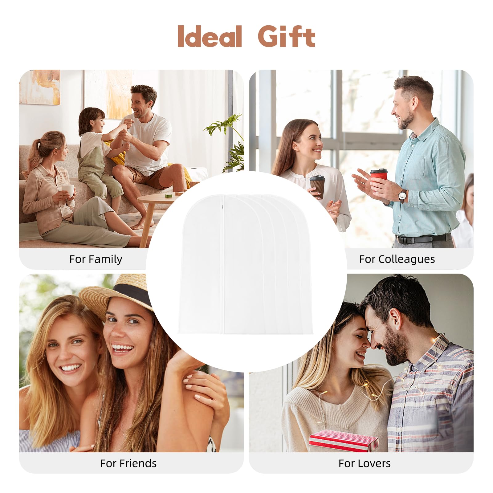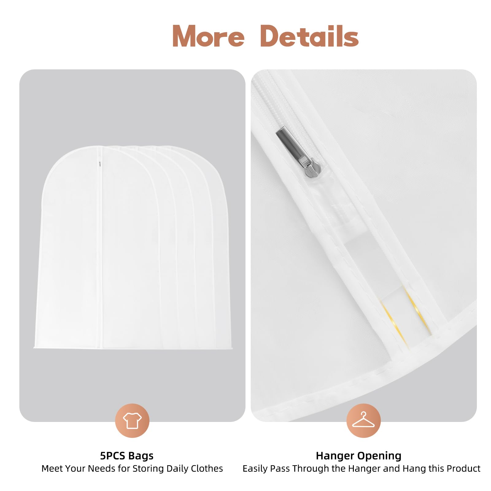 Garment Bags Dust Cover Storage Clear Dust Jacket,Five-Fiece Plastic Dust Suit Bag,White Zipper Breathable Full Zipper for Clothes Closet Coat Protection Garment Cover (60 x 120cm)