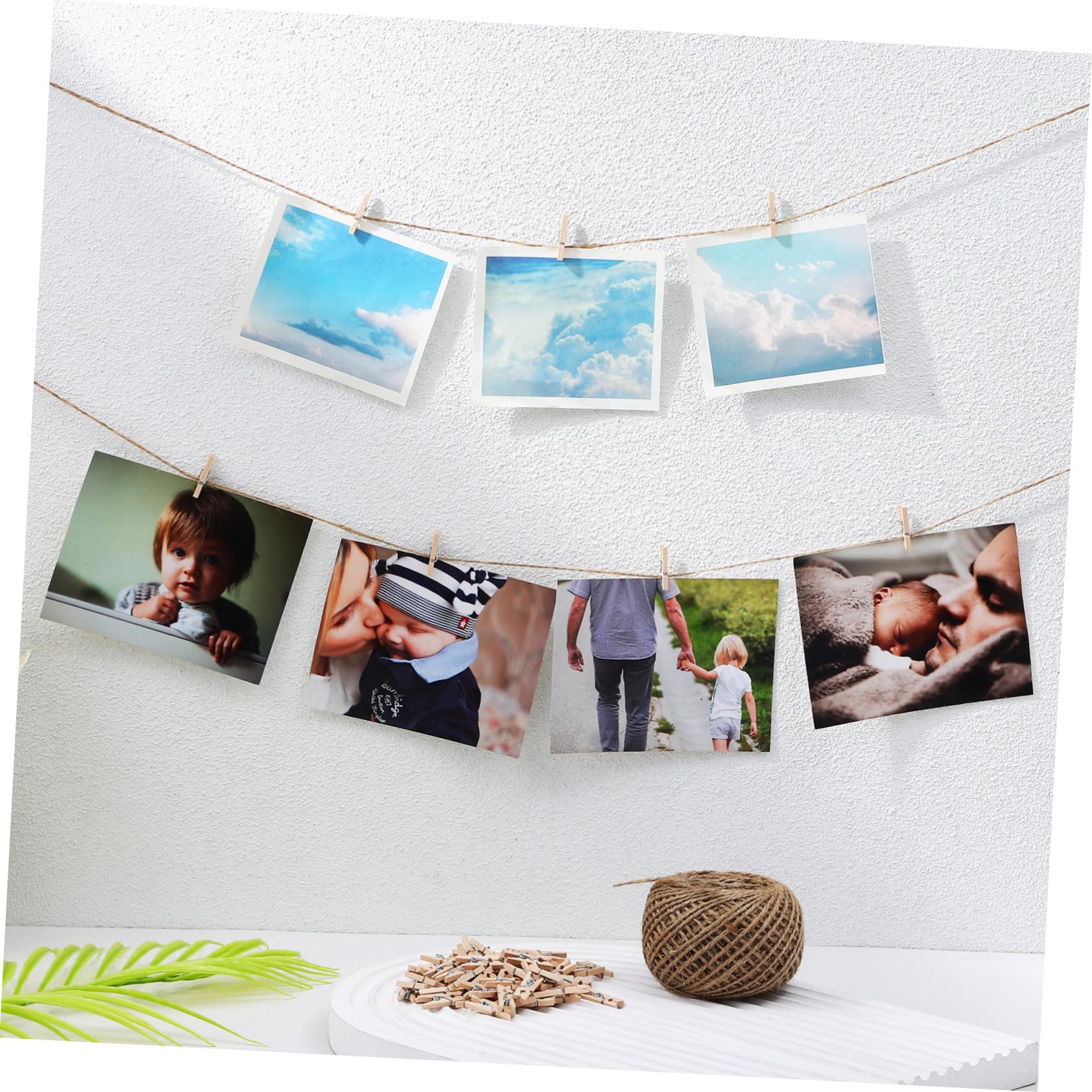 Garneck 1Roll Natural Jute Rope with Wooden Clips Hemp Twine for DIY Crafts Wrapping and Garden Decorations