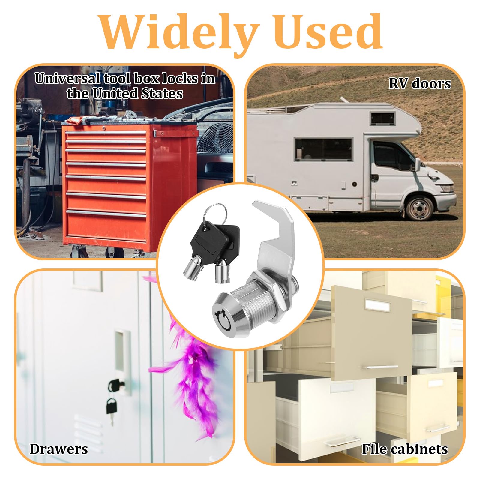 General Lock Replacement 5/8" Cabinet Cam Lock Keyed Alike Tool Box Locks with Keys Hook Cams Toolbox Locks for RV Storage Compartment Door Tool Cart Mailbox