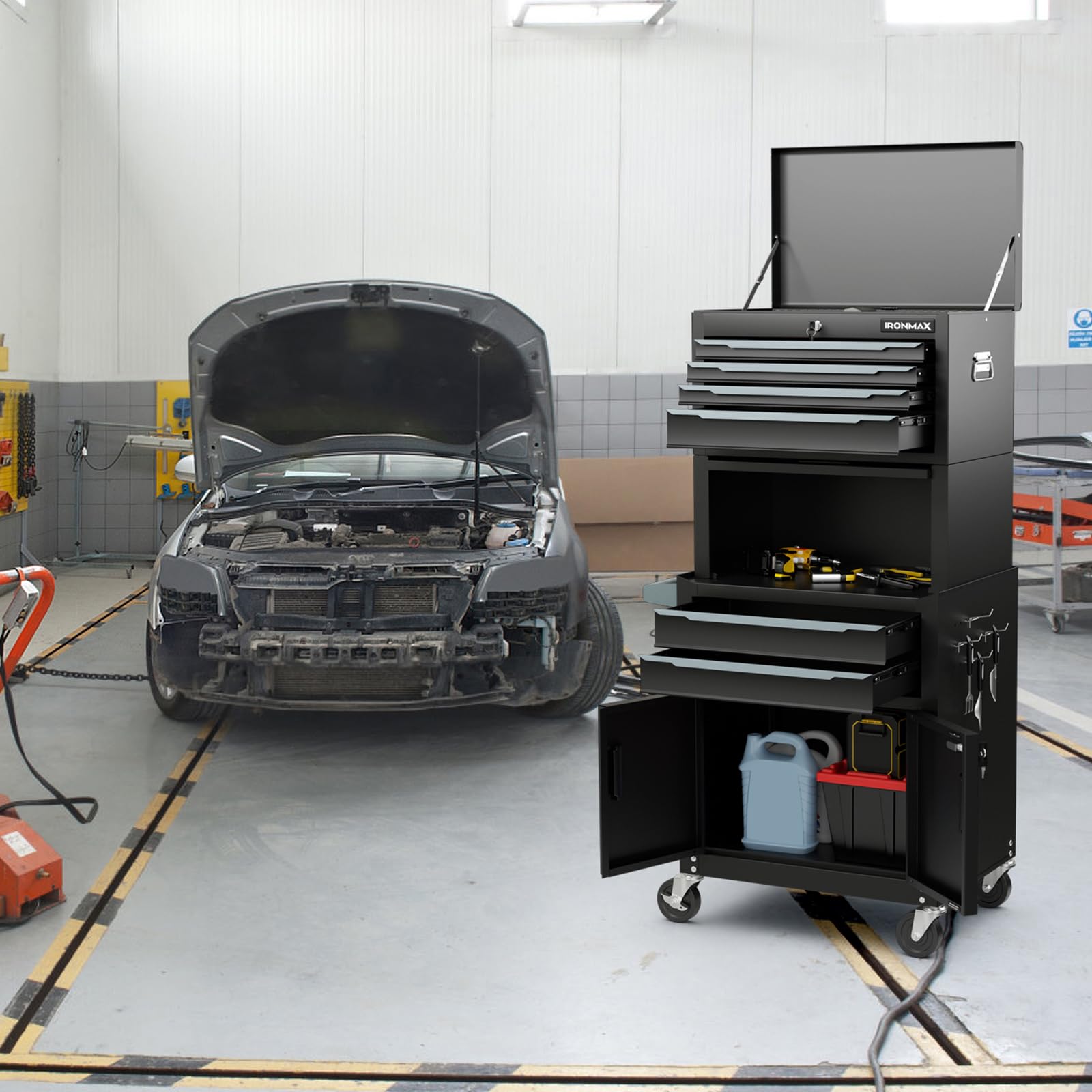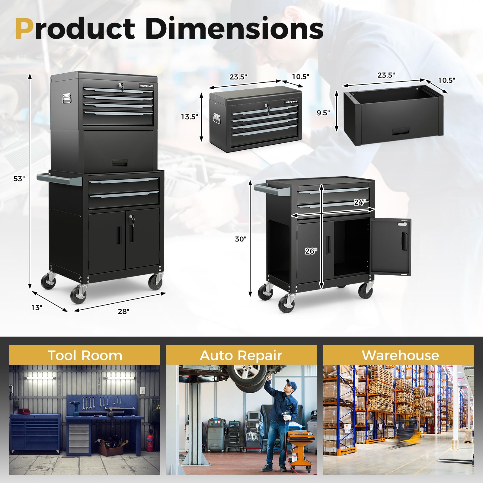 - 【Robust Metal Structure & Versatile Use】The whole tool chest combo is mainly made of high-grade metal which is super sturdy and rustproof. Therefore, it can withstand long-time use and heavy weight up to 330 lbs. And it will highly improve your working efficiency in auto repair shop, tool room, garage, warehouse and so on.