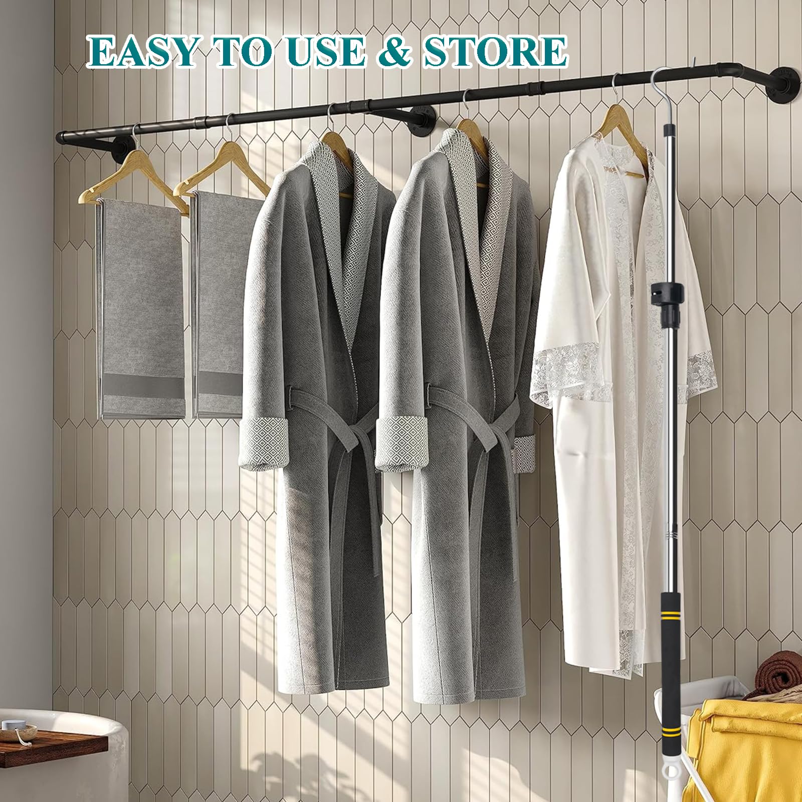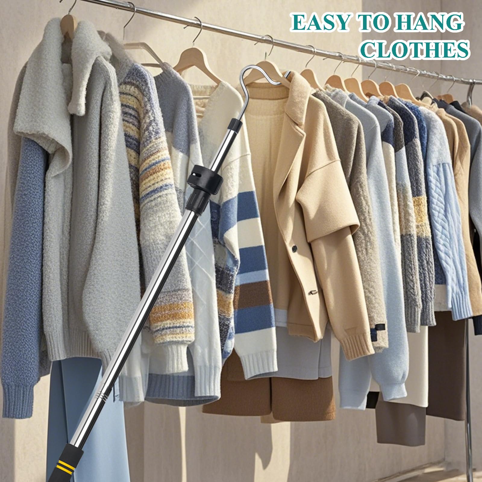 - The lightweight clothes pole allows you to easily grasp it to hang clothes on the top of the closet shelf, hang porch plants, and use for curtains or curtains. This telescopic pole is very suitable for anyone to reach these high areas.