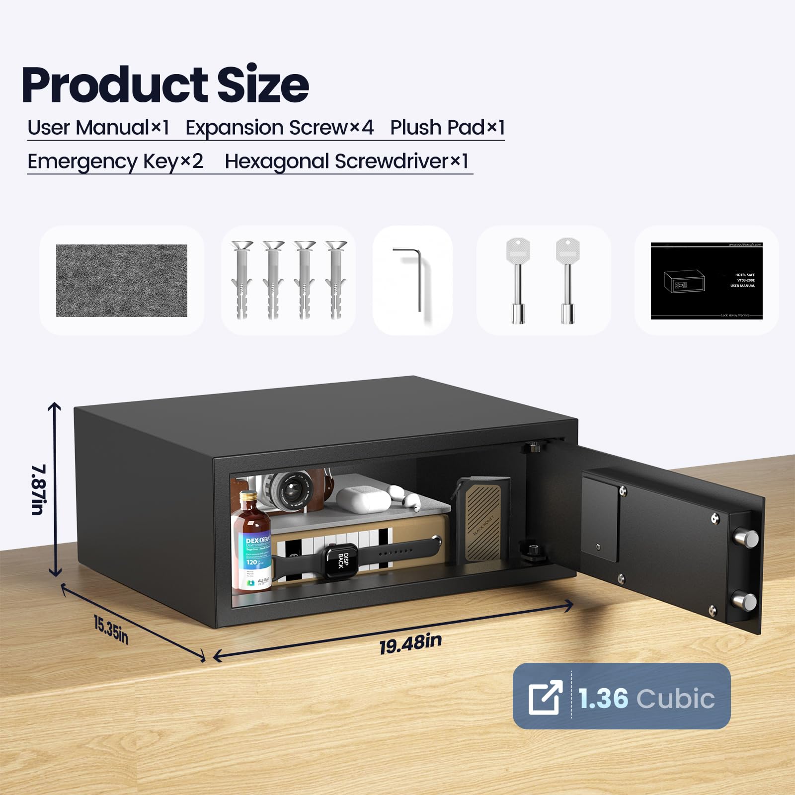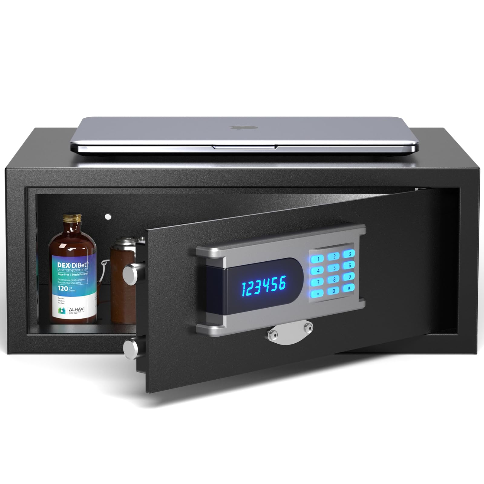 Grimtron Hotel Safe Box (1.36 cu. ft.) with Audit Function, Administrator Password, College Dorm Safe with Silent Mode, LED, and Backlit Keyboard for Documents, Laptop Safe for IPhone, Smart Watch