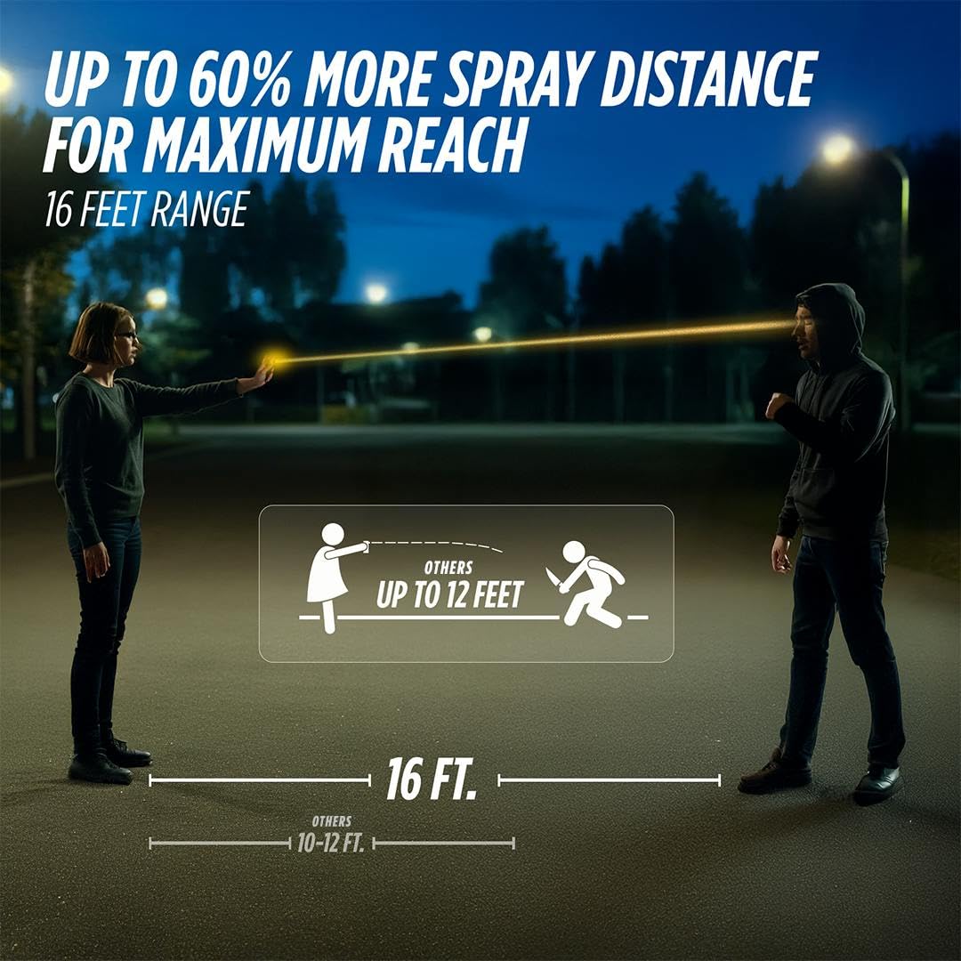 - 16-Foot Long-Range Protection – With one of the longest spray ranges in the industry, this personal defense pepper spray keeps threats at a safe distance, giving you time to react and escape safely. Our pepper spray ensures you’re always in control and protected