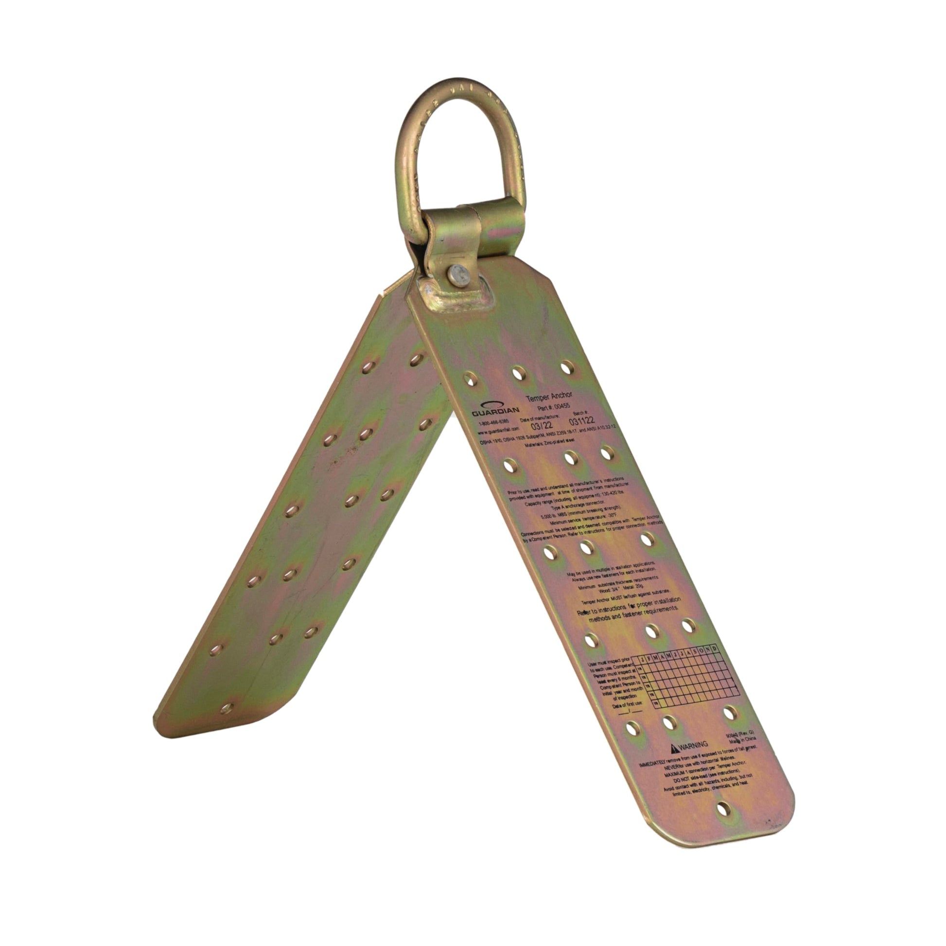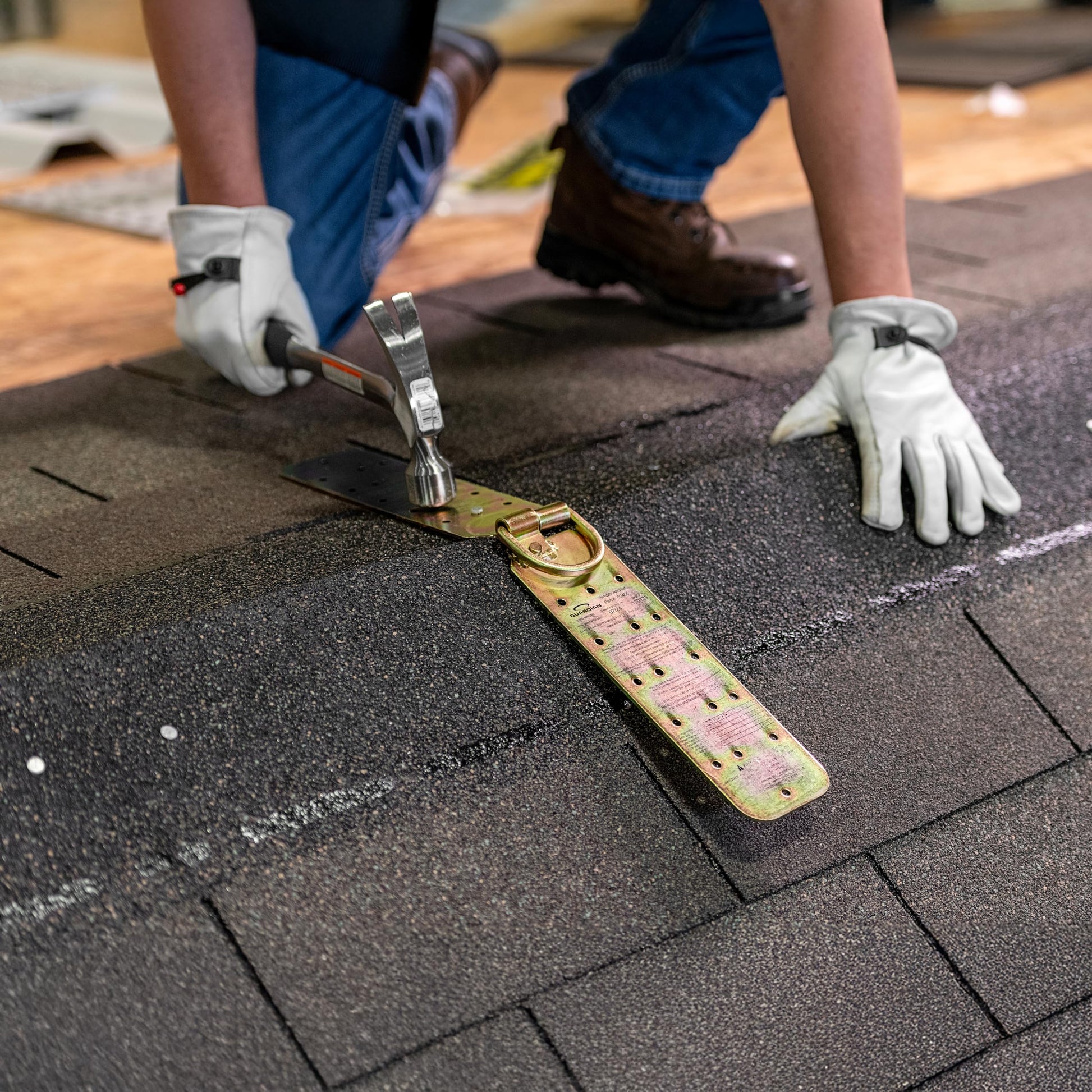 The Bucket of Safety comes with a temper roof anchor that easily installs with included screws on most roofs up to 12/12 roof pitch. The anchor is designed with offset holes down the center to avoid truss splitting, while the lifeline simply clips to the attached D-ring. This anchor is designed from thick plated metal for durable, long-lasting use, and meets all standards for fall arrest.