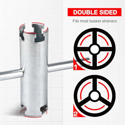 - Double-ended design to fit most basket strainers and includes a bar handle to stabilize the tool during the tightening process