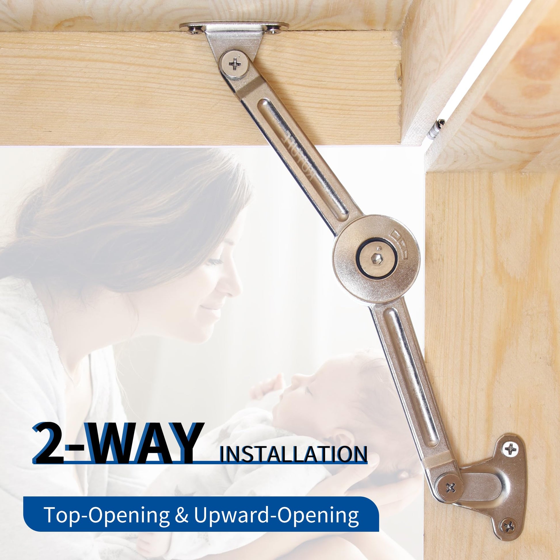 - LID SUPPORT HINGE—Lid support hinge can be mounted on the left or right side. , Upward door open adjustable angle of 75°,90°,110° by yourself.