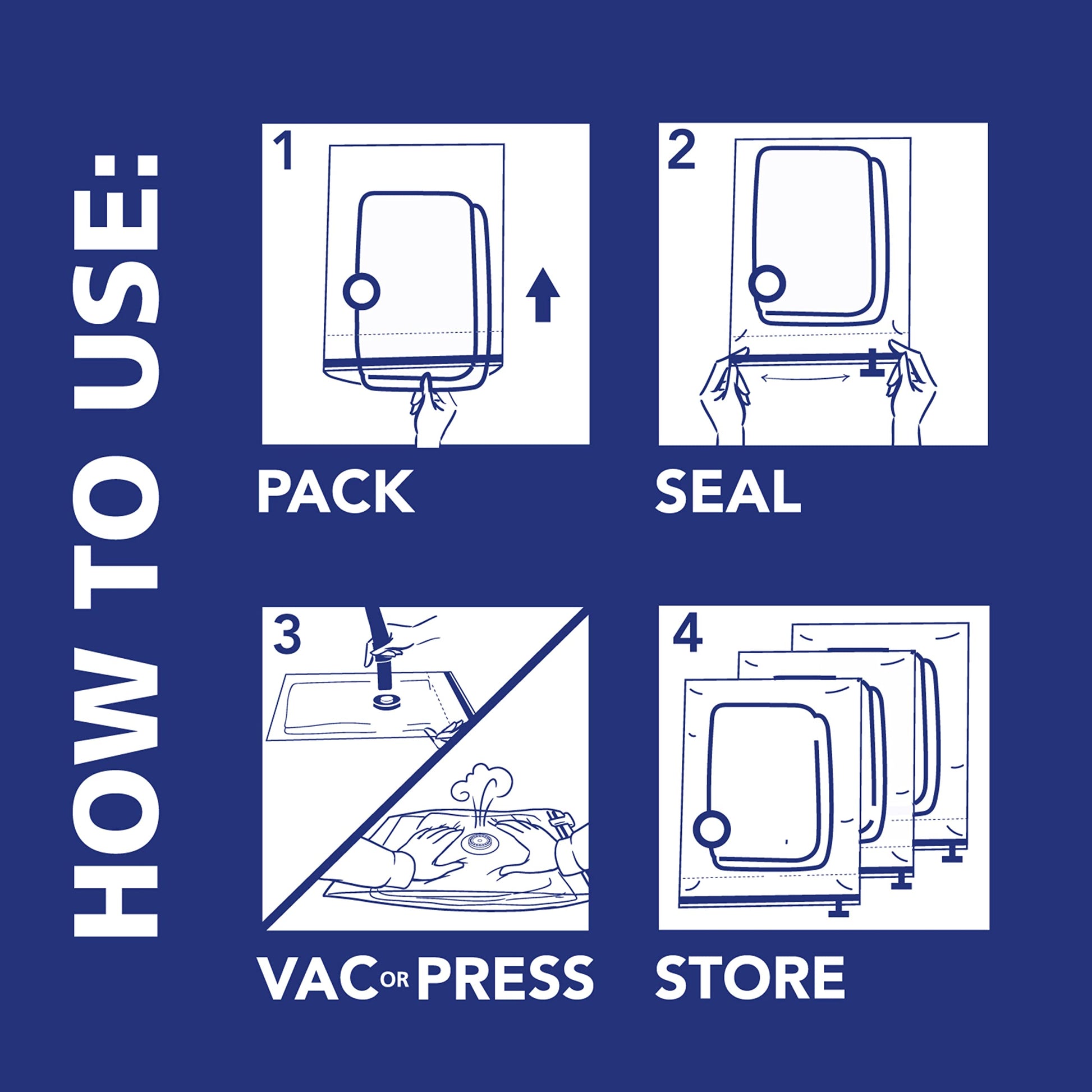 - Easy to Use: These bags feature an intuitive closure system that creates an easy air-tight seal, just Pack, Seal, Vac (or Press) and Store