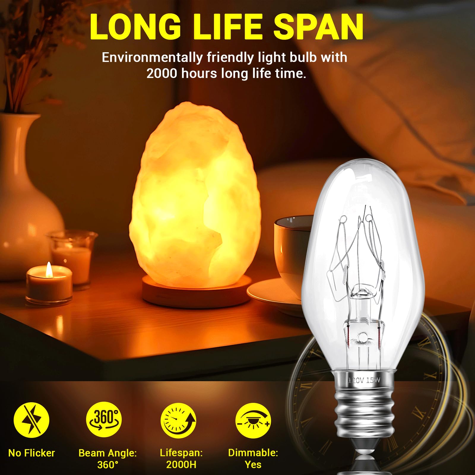 - 【IDEAL FOR RELAXING LIGHTING】Upgrade your lighting with this versatile 15-watt bulb, crafted for salt lamps, chandeliers, and night lights. Enjoy a calming atmosphere while prolonging your warmer's performance.