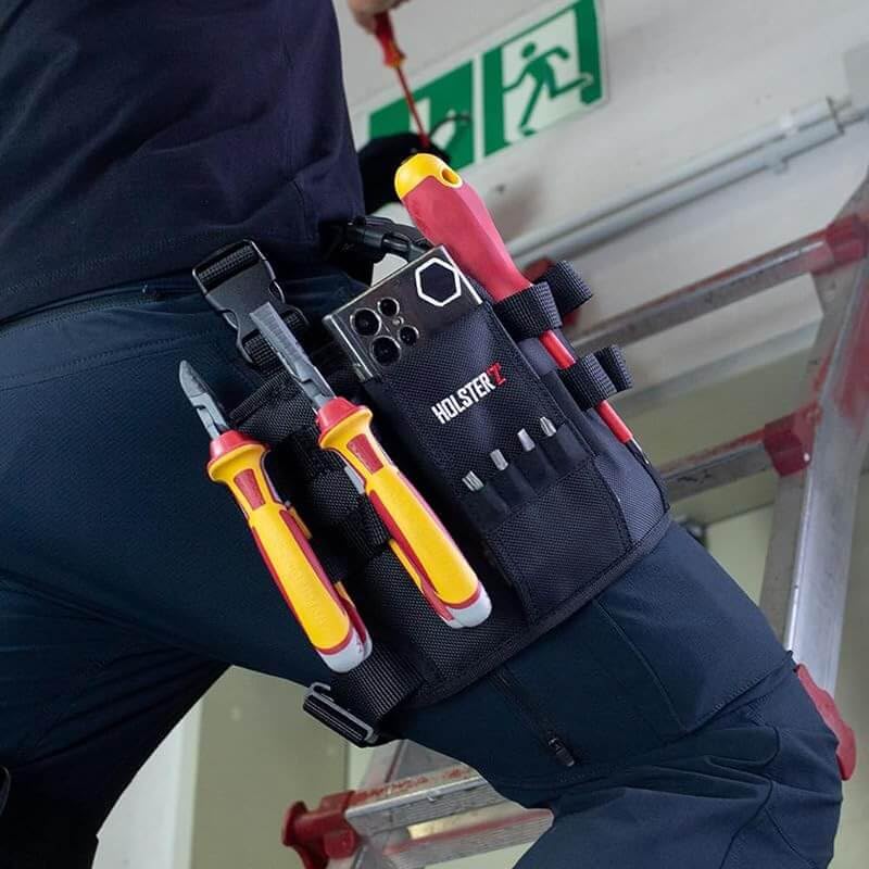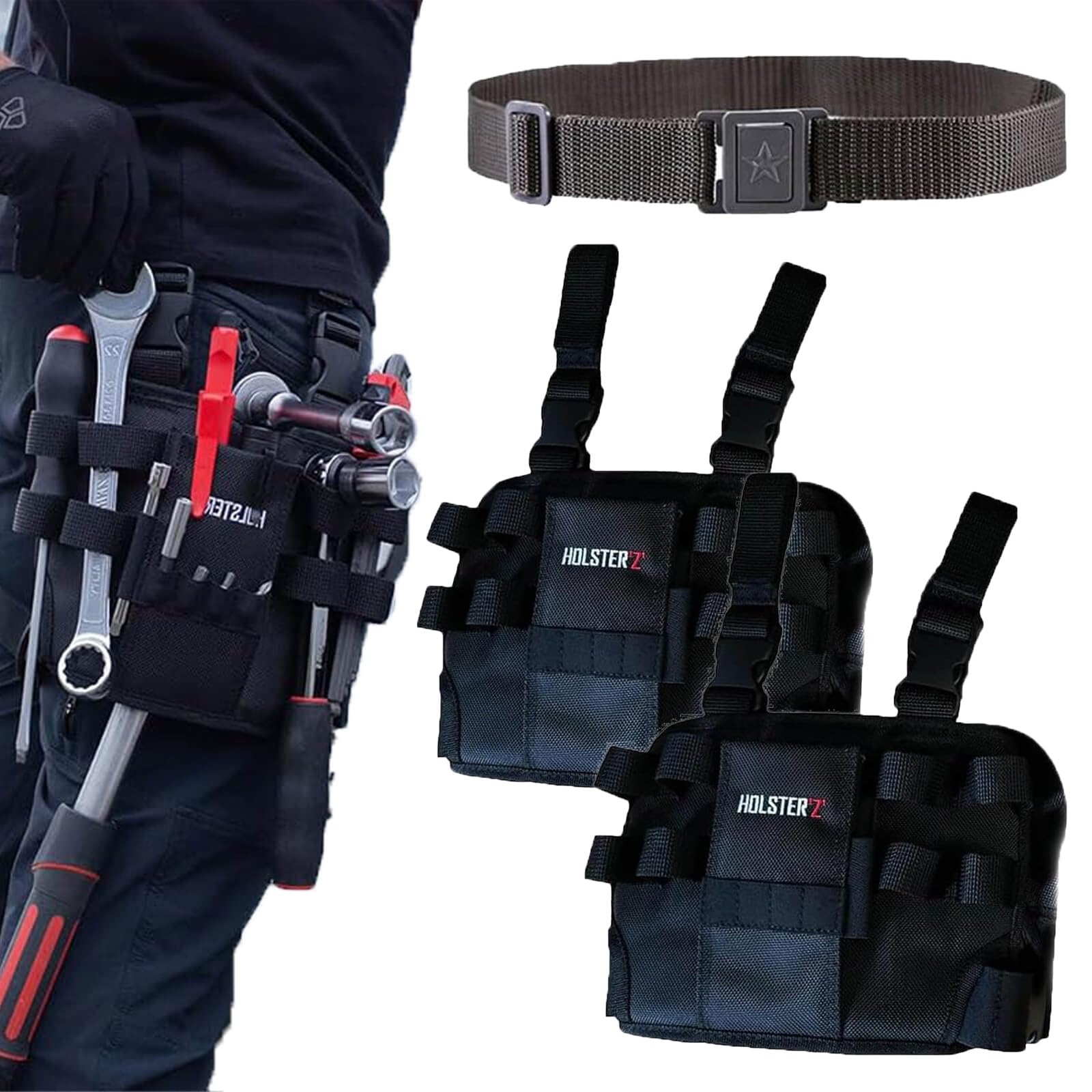 - Holster Z 2.0 Tool Pouch: Adjustable belt (18"-46" waist) with anti-slip padding fits roofers/hairstylists/DIYers during overhead tasks or crouching. Dual quick-release buckles enable tool swaps in 8 seconds