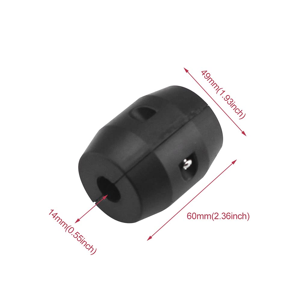 B: Maximum outer diameter: 46.5mm/1.83 inches, 60mm/2.36 inches (H), 14mm/0.55 inches (hole spacing)