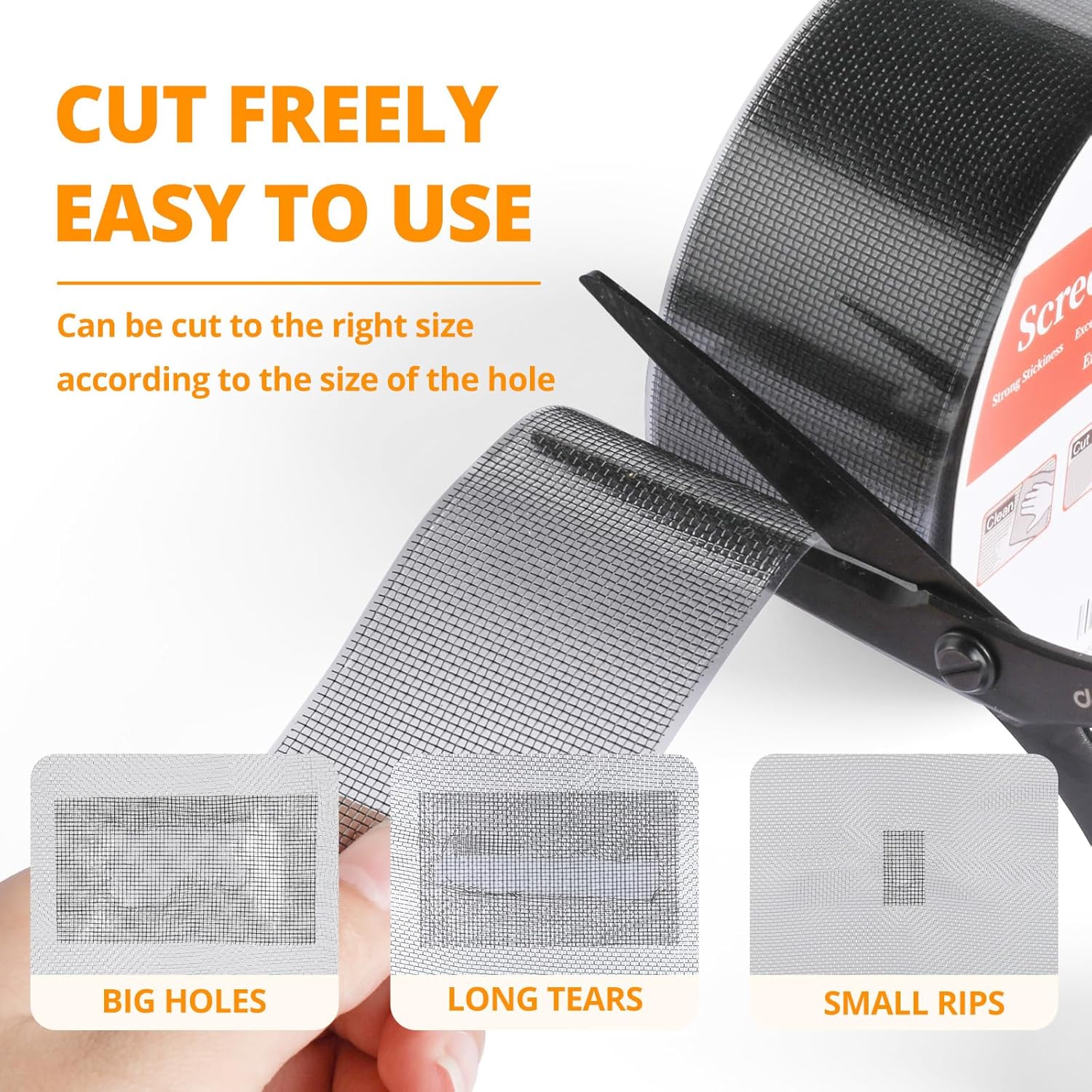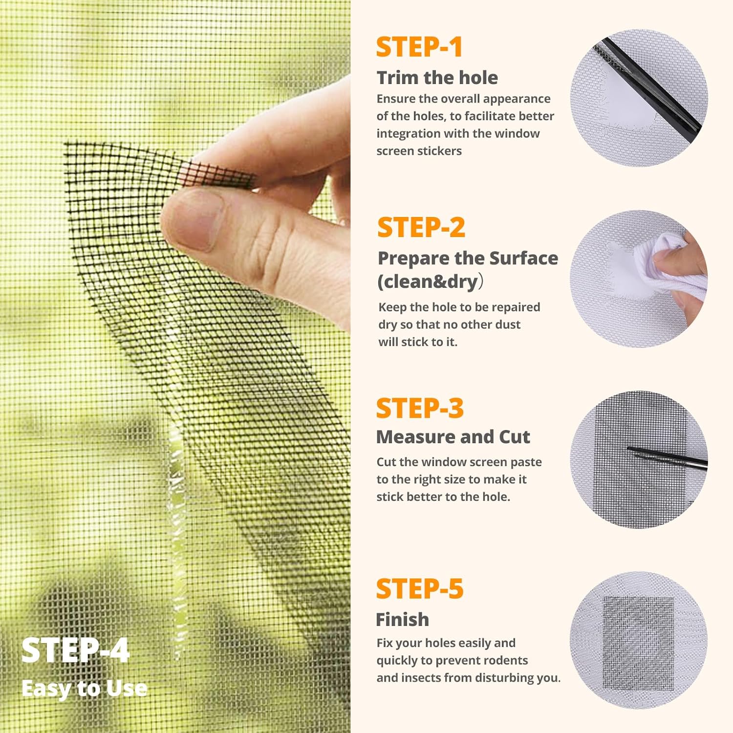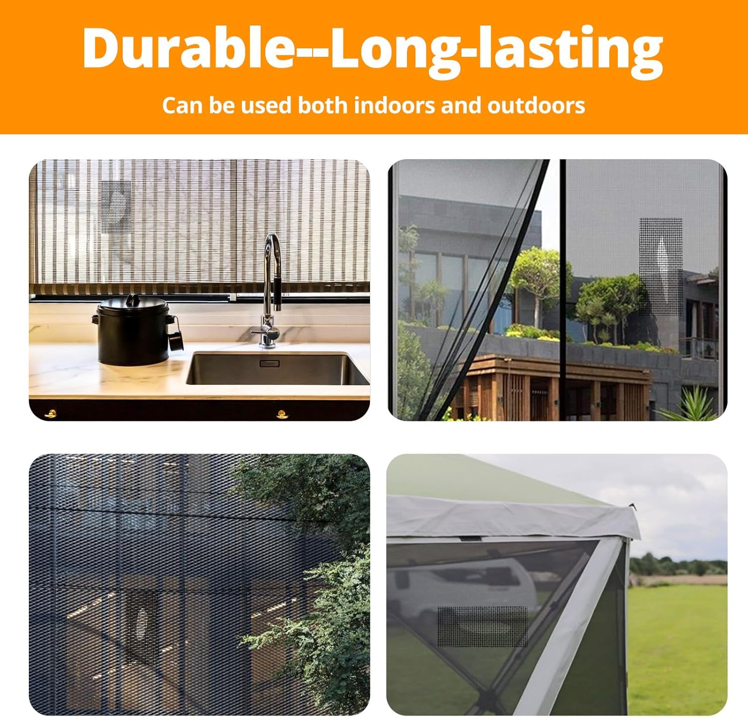 - 【Widely Used】This window screen repair kit is perfect for indoor and outdoor use as it can withstand high and low temperatures, it can be used to repair scratches and holes in window screens, screen doors, tent nets, pool screens, RV screens, sun visors, vents or cats, dogs, and it can prevent cockroaches, mice, flying insects from bothering you, just cut and place the size you want to fix breaks and holes in the screens, and Durable, no need for secondary gluing