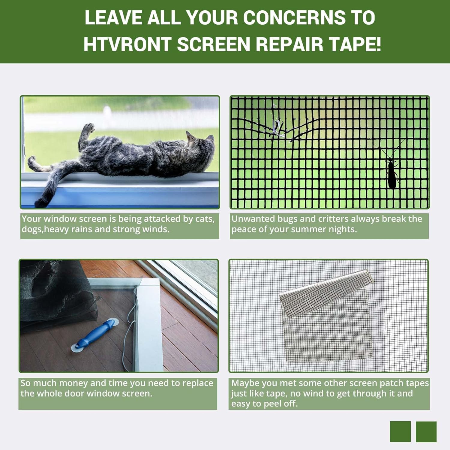 HTVRONT Window Screen Repair Tape - 2 in X 15 FT Window Screen Repair Kit for Screen and Screen Door Tears Holes -Strong Adhesive Fiberglass Covering mesh Screen Patch Repair Kit (Black)