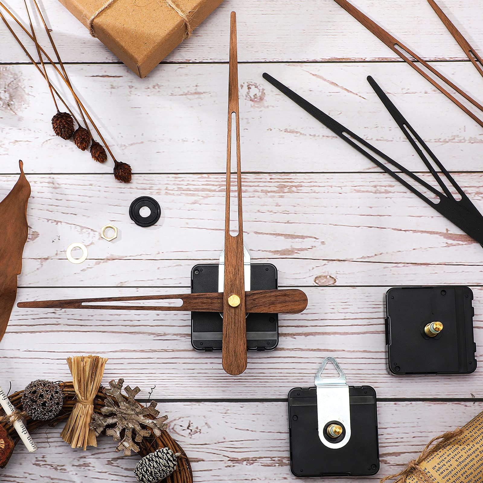 - Package information: you will get 2 pieces of quartz clock movements (30 mm), 2 pieces of gasket tools, 2 pieces of metal hooks and 2 types of walnut wood clock hands in 2 colors, including black and wood color, only suitable for 24 inches clock