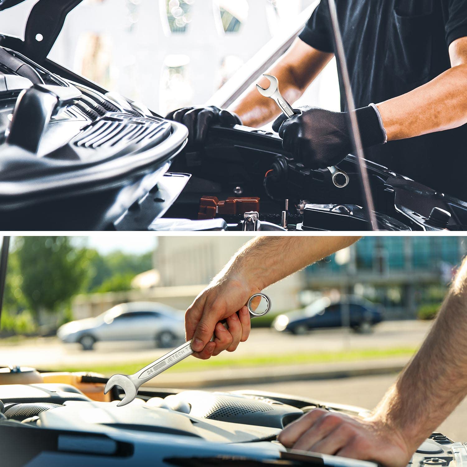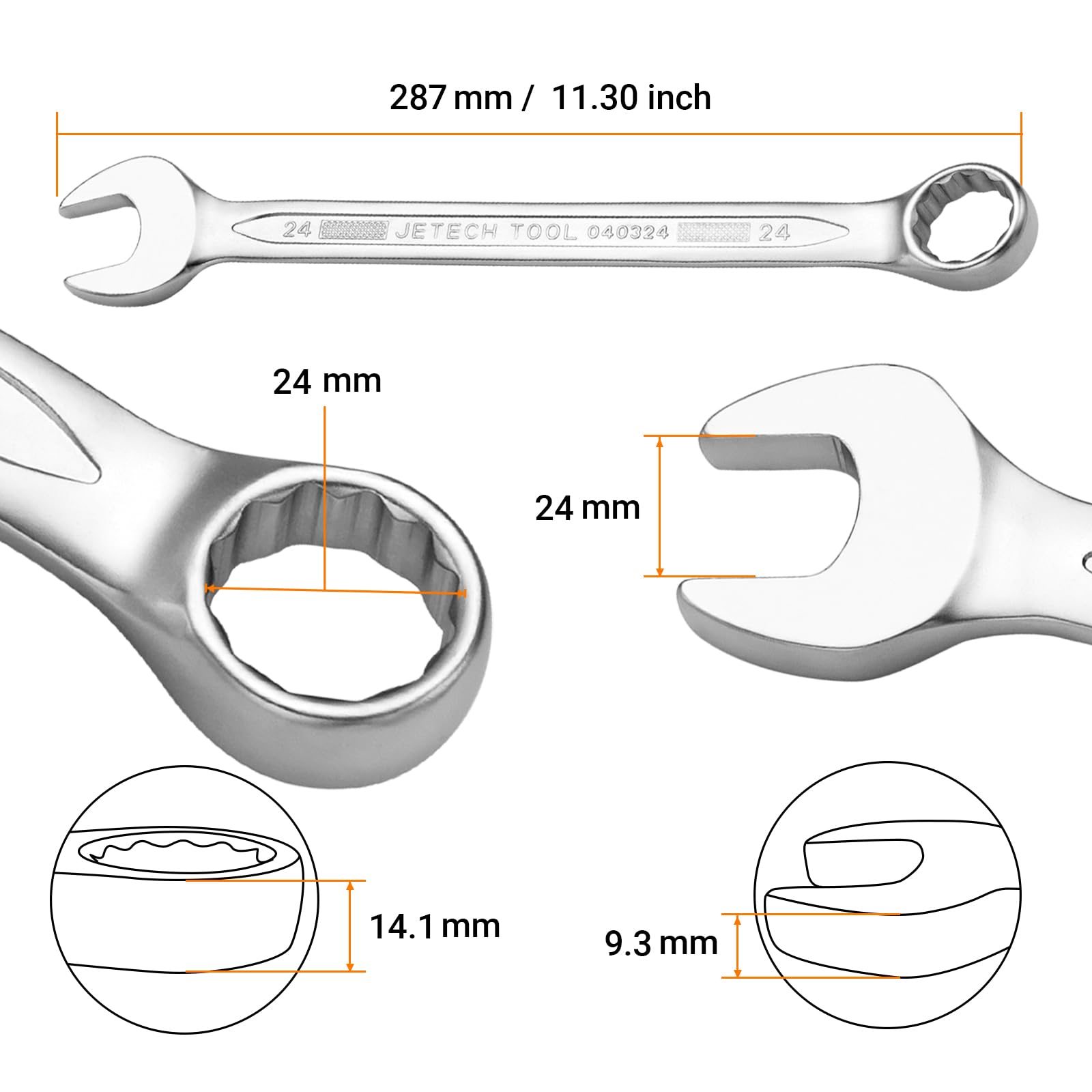Jetech 24mm Metric Combination Wrench - Premium Industrial Grade Spanner: 12-Point Box End, 15-Degree Offset, Durable Chrome Vanadium Steel, Sand Blasted Finish