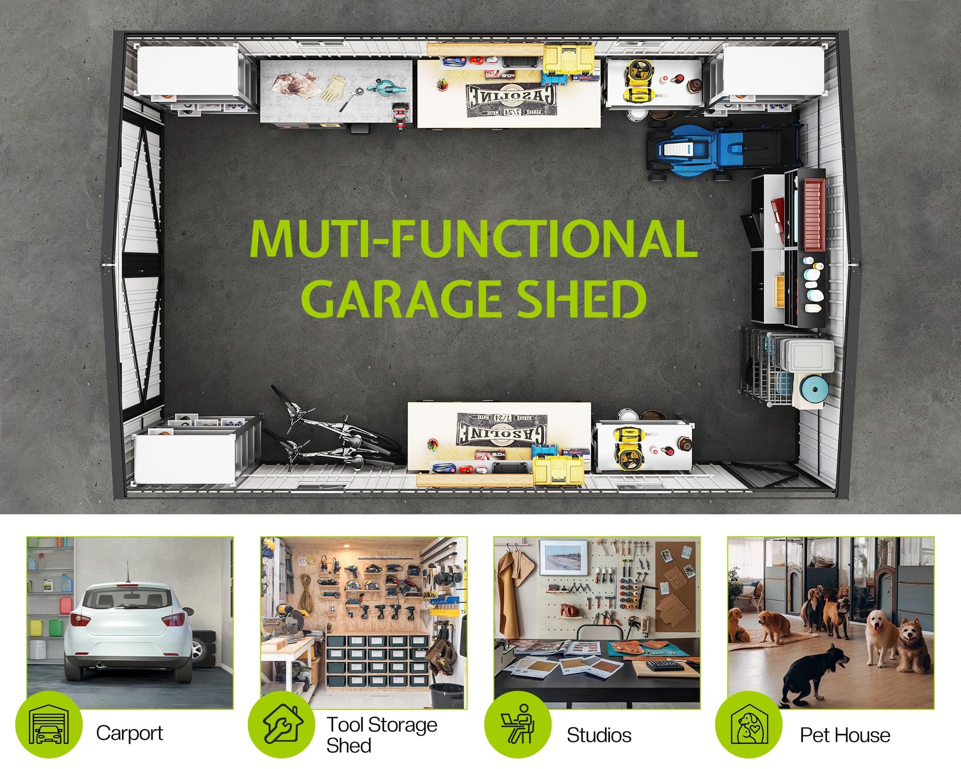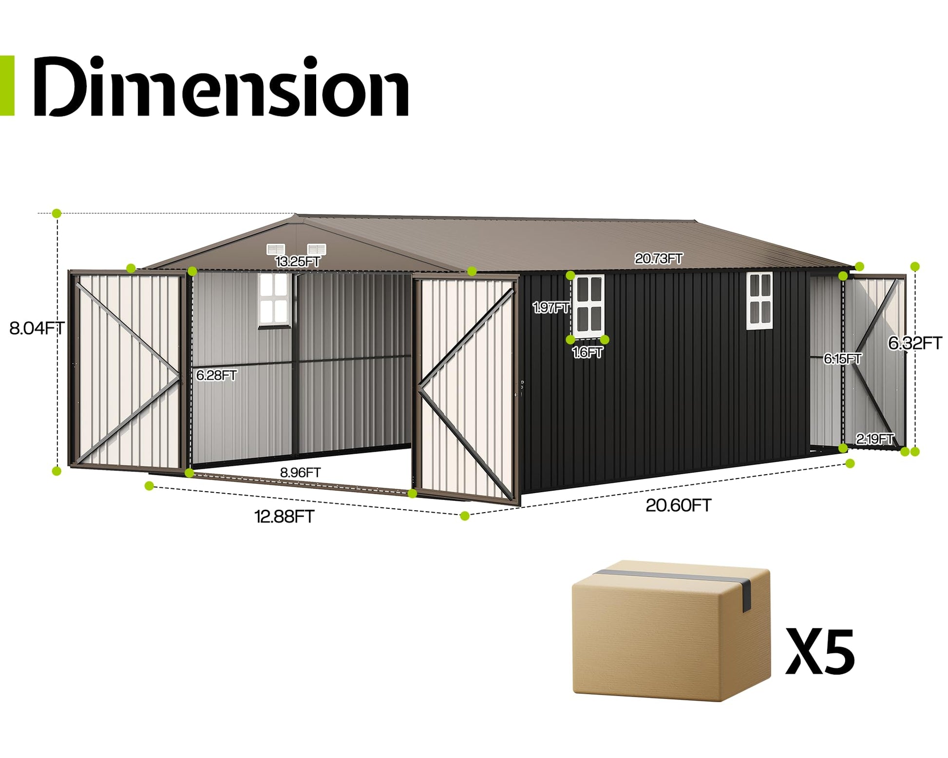- Spacious Design: Measuring 13.2x20.7x8 FT, this metal garage offers 1682 Cu.ft space to protect your vehicles, RVs, or outdoor equipment from the elements, ensuring they stay safe and dry.