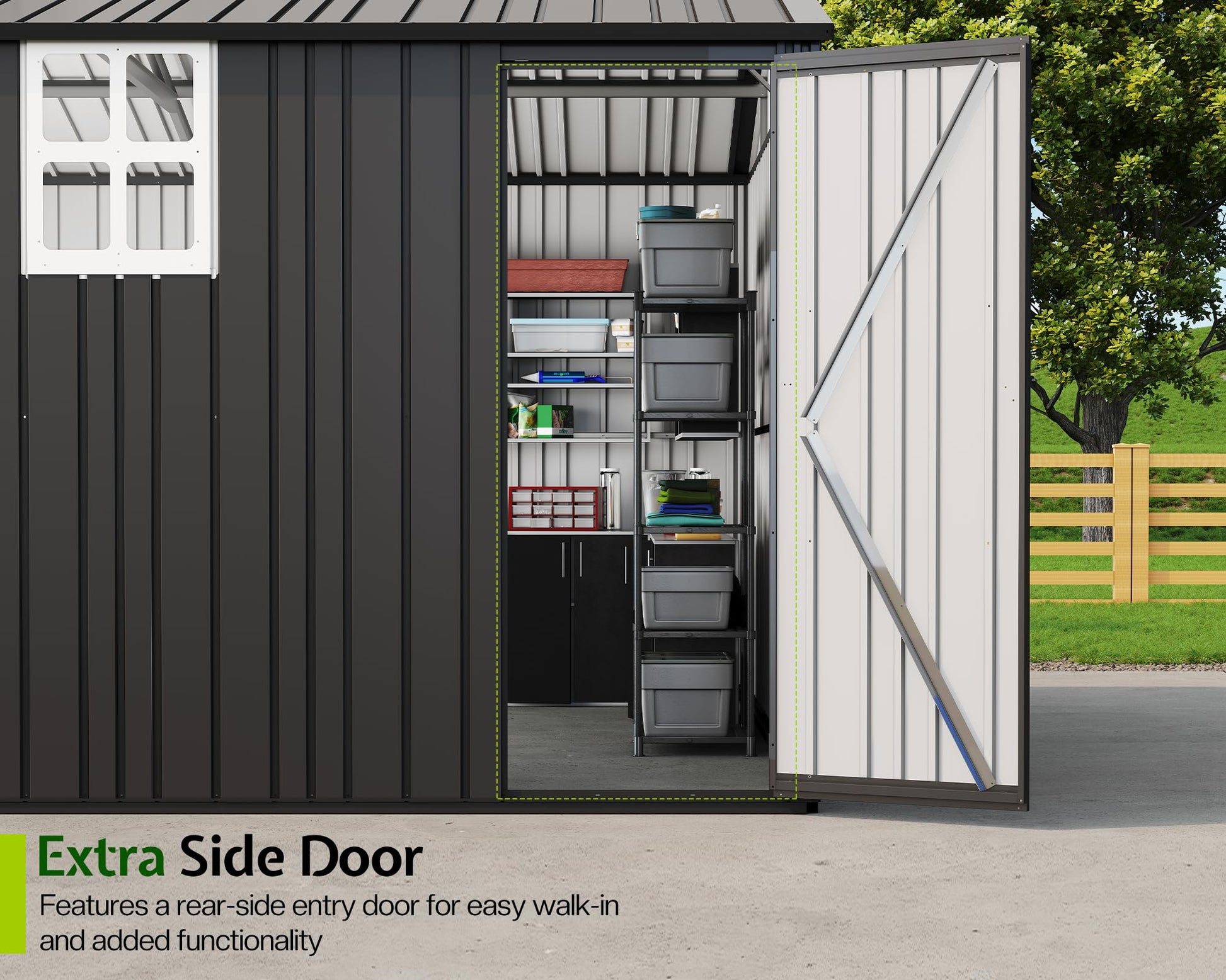 - Convenient Access: Featuring two larged hinged doors at the front and a smaller side door, this carport provides easy access to your vehicles and storage items.