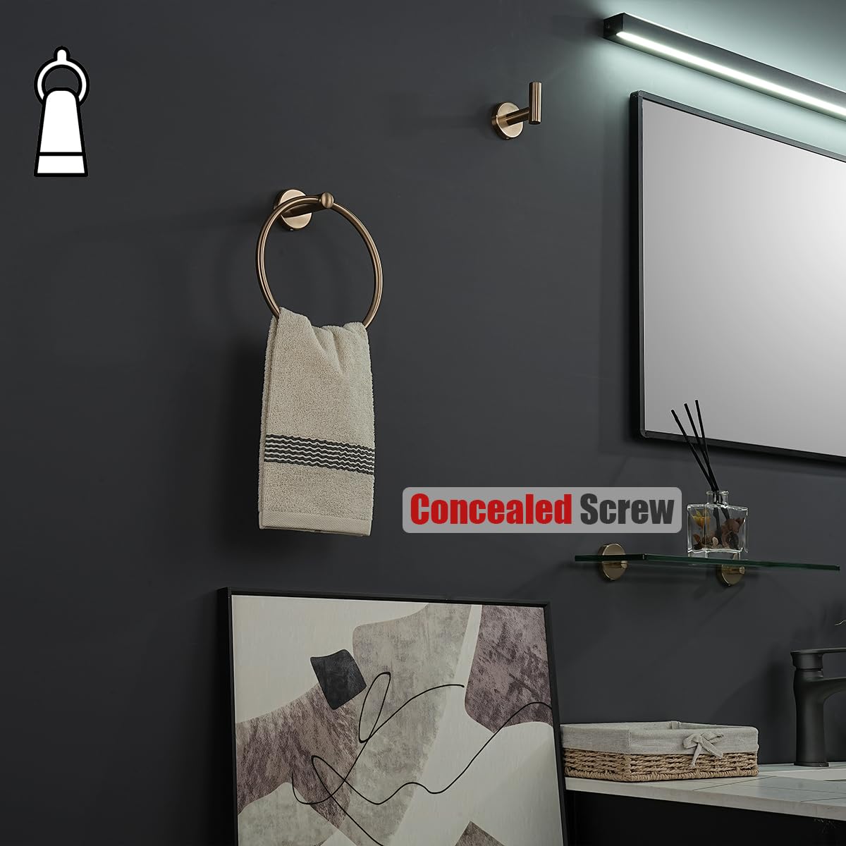 - 【Champagne Bronze Towel Ring】 ALL SUS 304 stainless steel construction, Champagne Bronze finish, rust-proof & toughness ensuring longevity