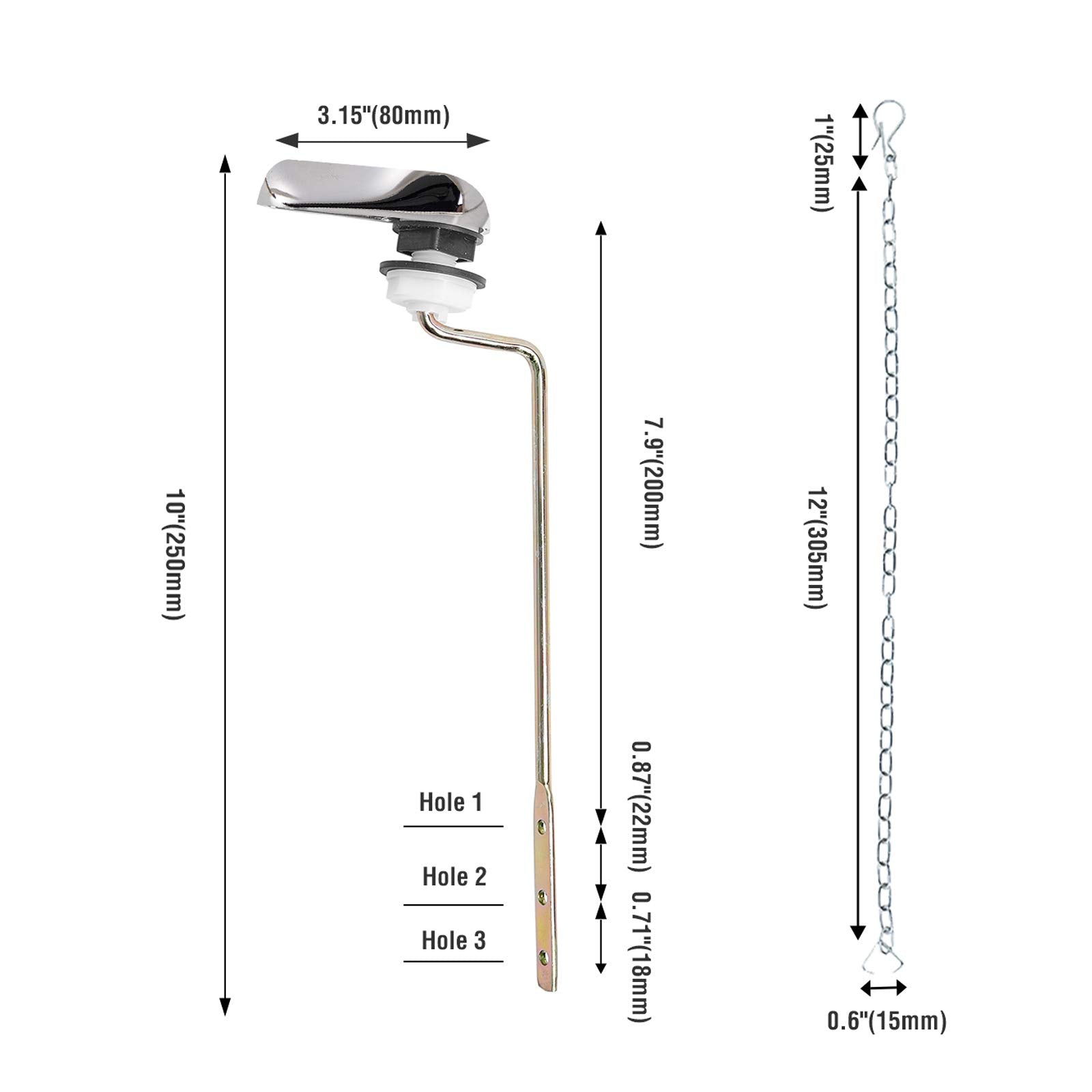 - DURABLE CONSTRUCTION - Built to last with a premium quality pre-drilled 8-Inch steel rod and chrome finish handle, it offers a durable design, easy to clean and maintain. Completed with plastic nut and rubber seal gasket, the trip lever can be installed effortlessly on existing toilet fixtures.