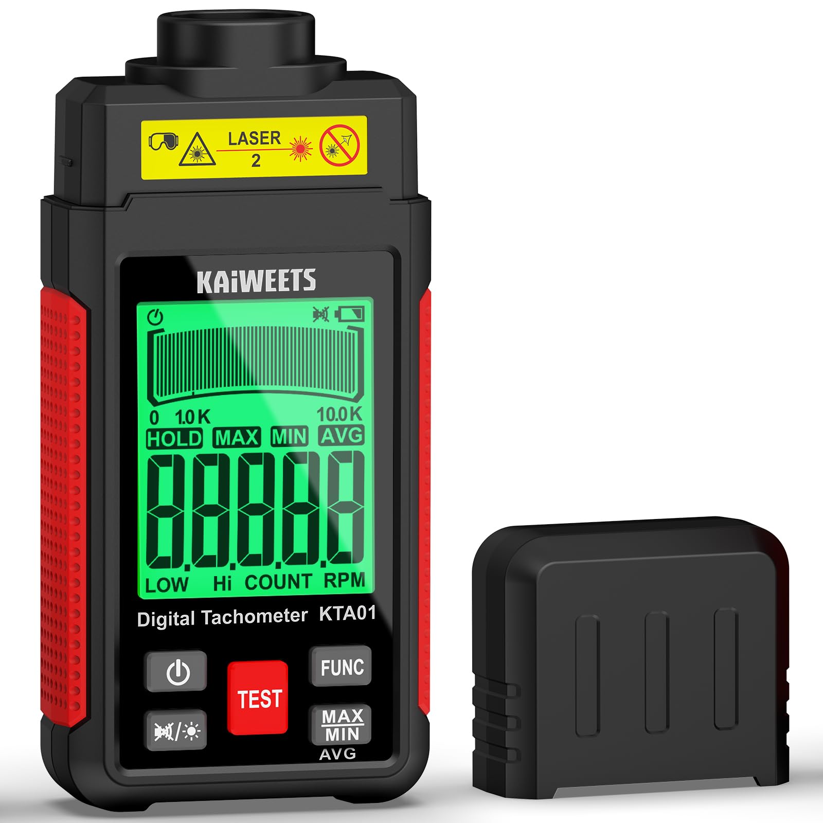 KAIWEETS Non Contact RPM Tachometer with Reflection Tape, 10-99999 RPM High Accuracy Laser Digital Tachometer with Large LCD, RPM Meter with Backlight, Data Hold, and Max/Min/AVG Function